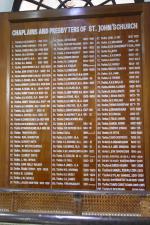 Digital photograph taken at St Johns Church, Trichy, Madras, listing the Chaplains and Presbyters from 1783 to 2015
