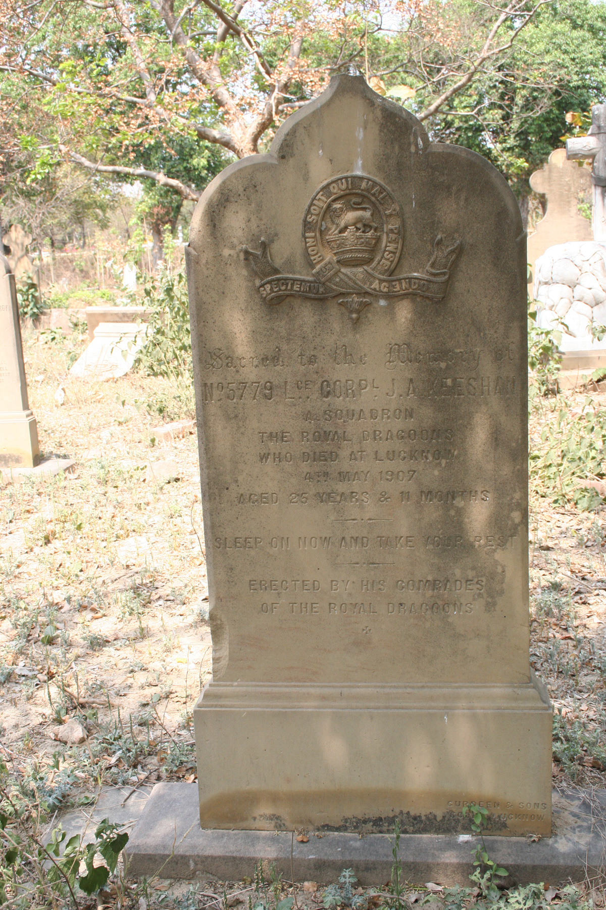 Keeshan, L/Cpl. J.A., gravestone at Bandariabagh
