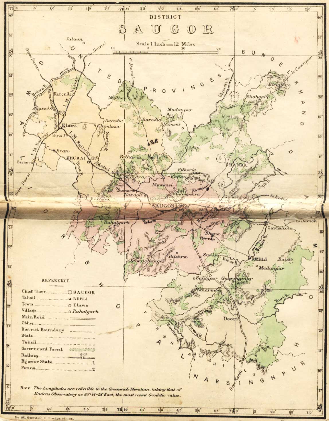 Map of the Saugor District. Maps may be used for personal and non-commercial use only.