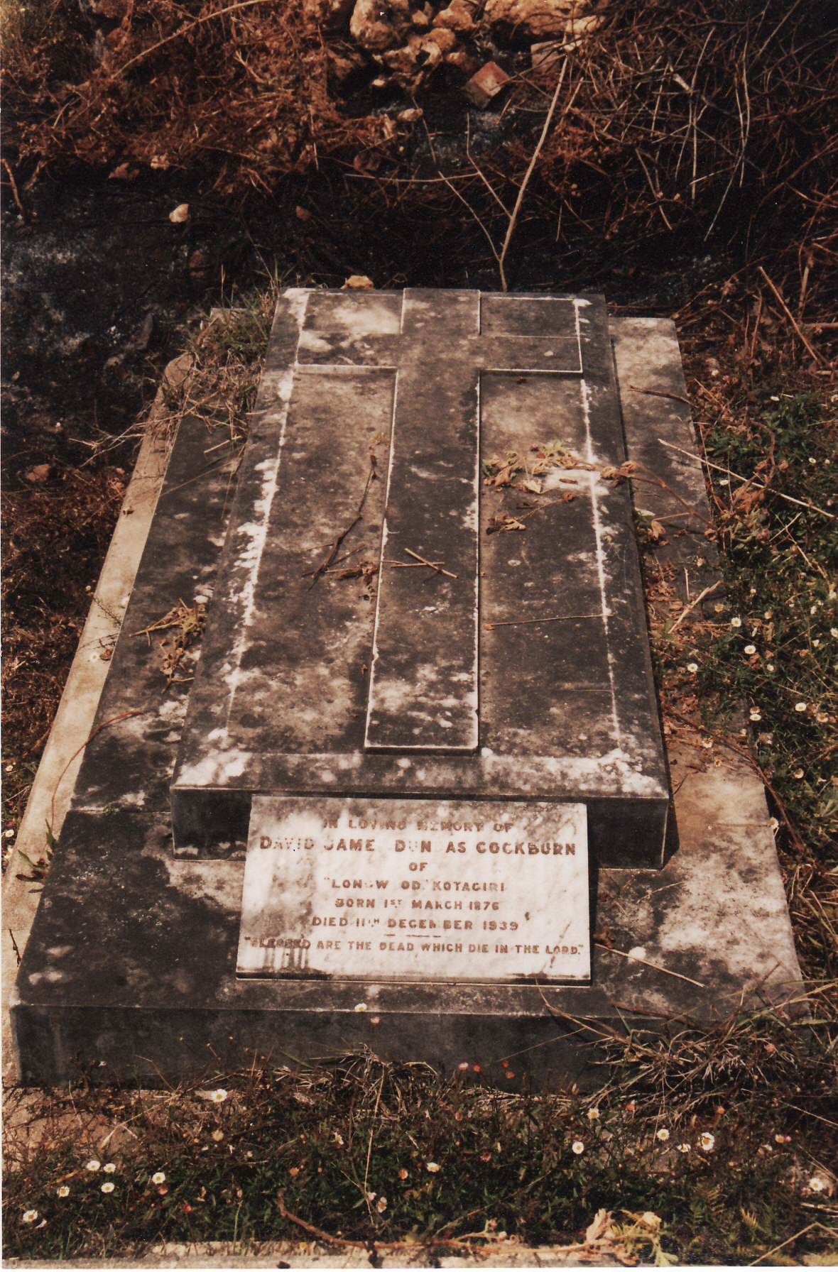 Gravestone of David James Dundas Cockburn at Kotagiri