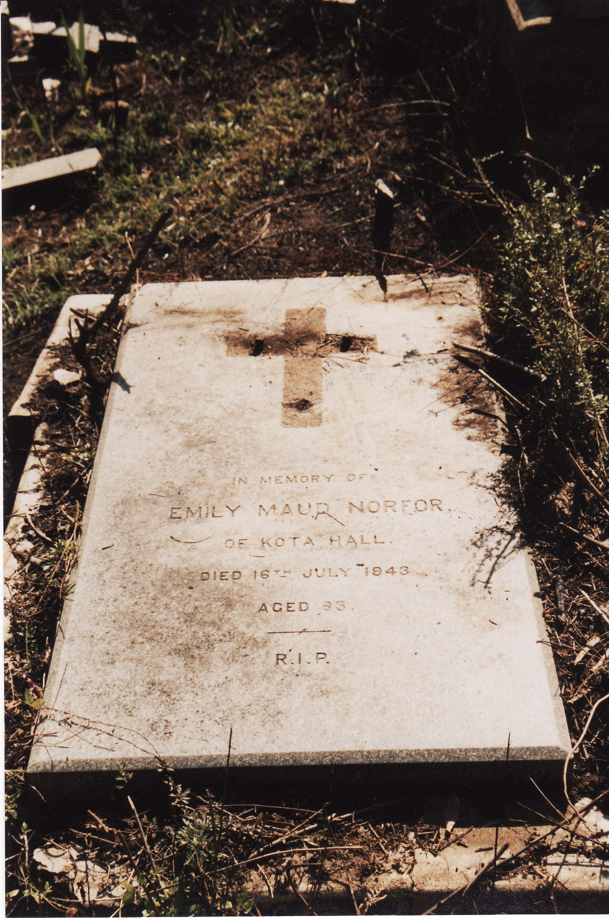 Gravestone of Emily Maud Norfor at Kotagiri