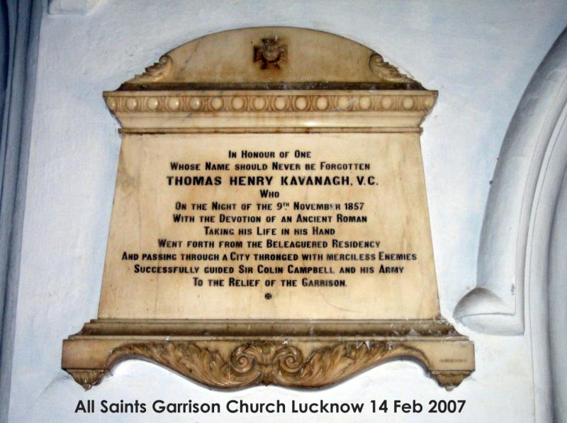 Memorial to Thomas Henry Kavanagh - All Saints garrison Church, Lucknow