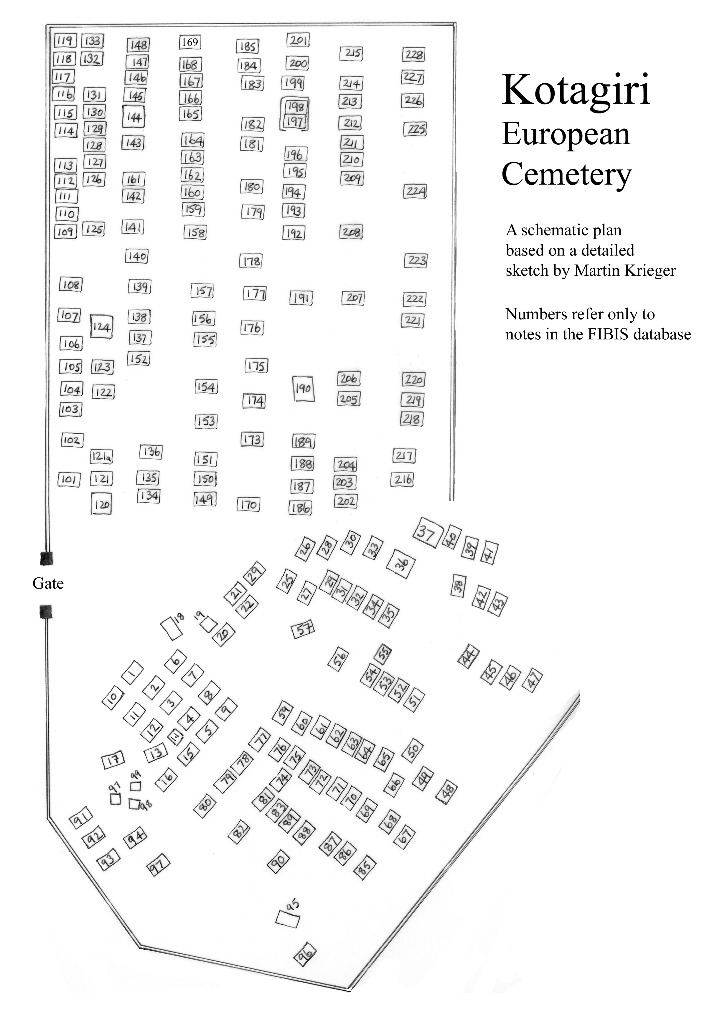 A schematic plan of Kotagiri European Cemetery