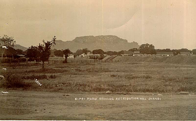 An early 20th century postcard of 'Sipri Road Showing Retribution Hill, Jhansi'