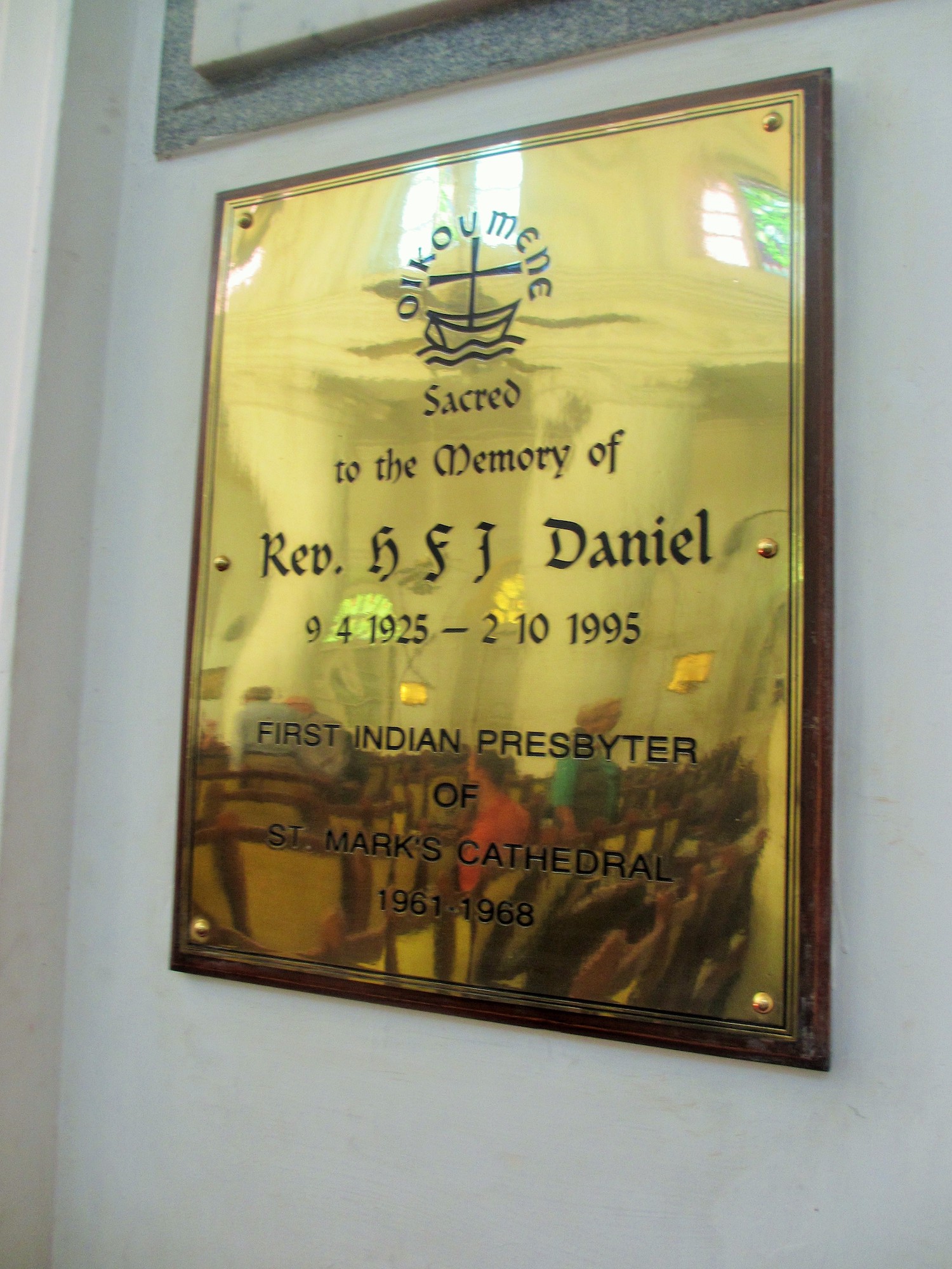 Rev H F I Daniel, Memorial St Marks Cathedral Bangalore