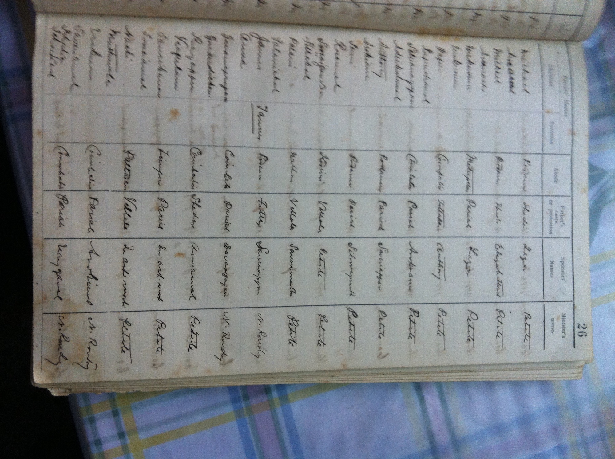 St Michaels Church, Coimbatore Baptismal Register page images.
