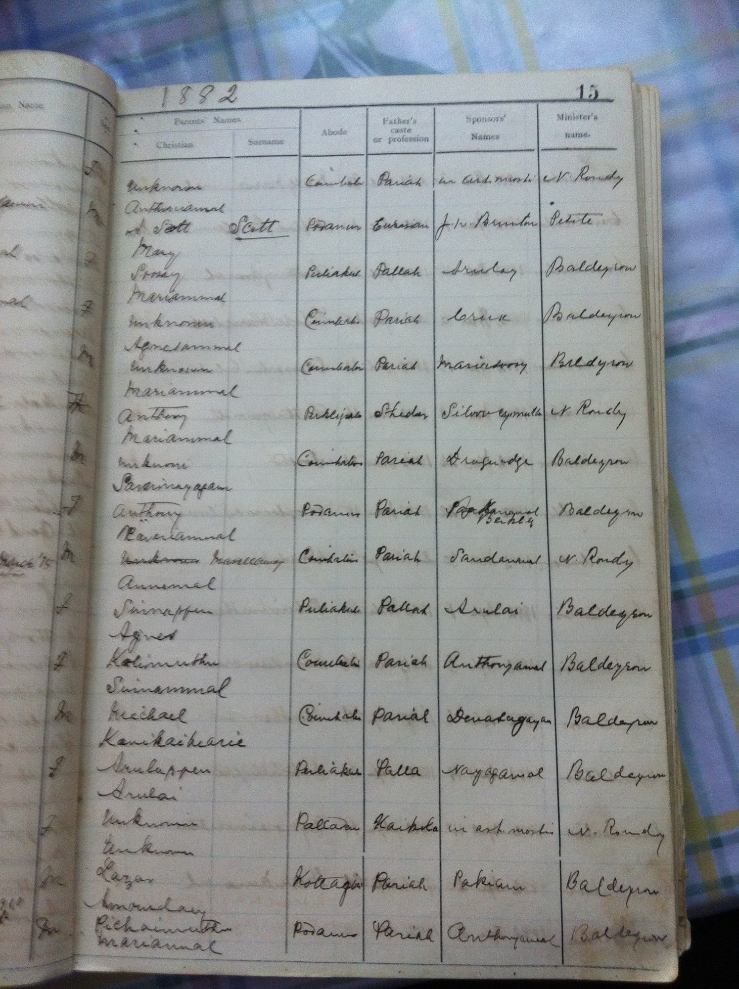 St Michaels Church, Coimbatore - Baptismal Register