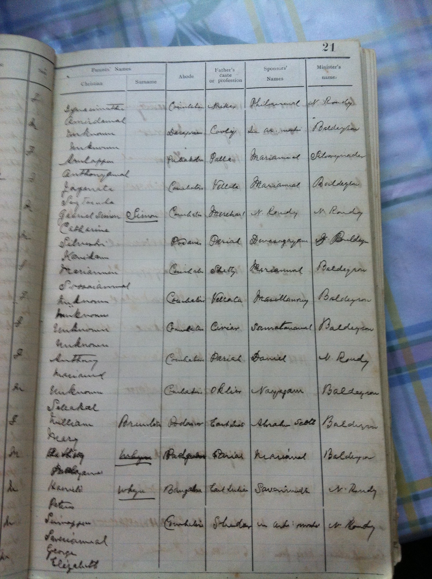 St Michaels Church, Coimbatore Baptismal Register page images.