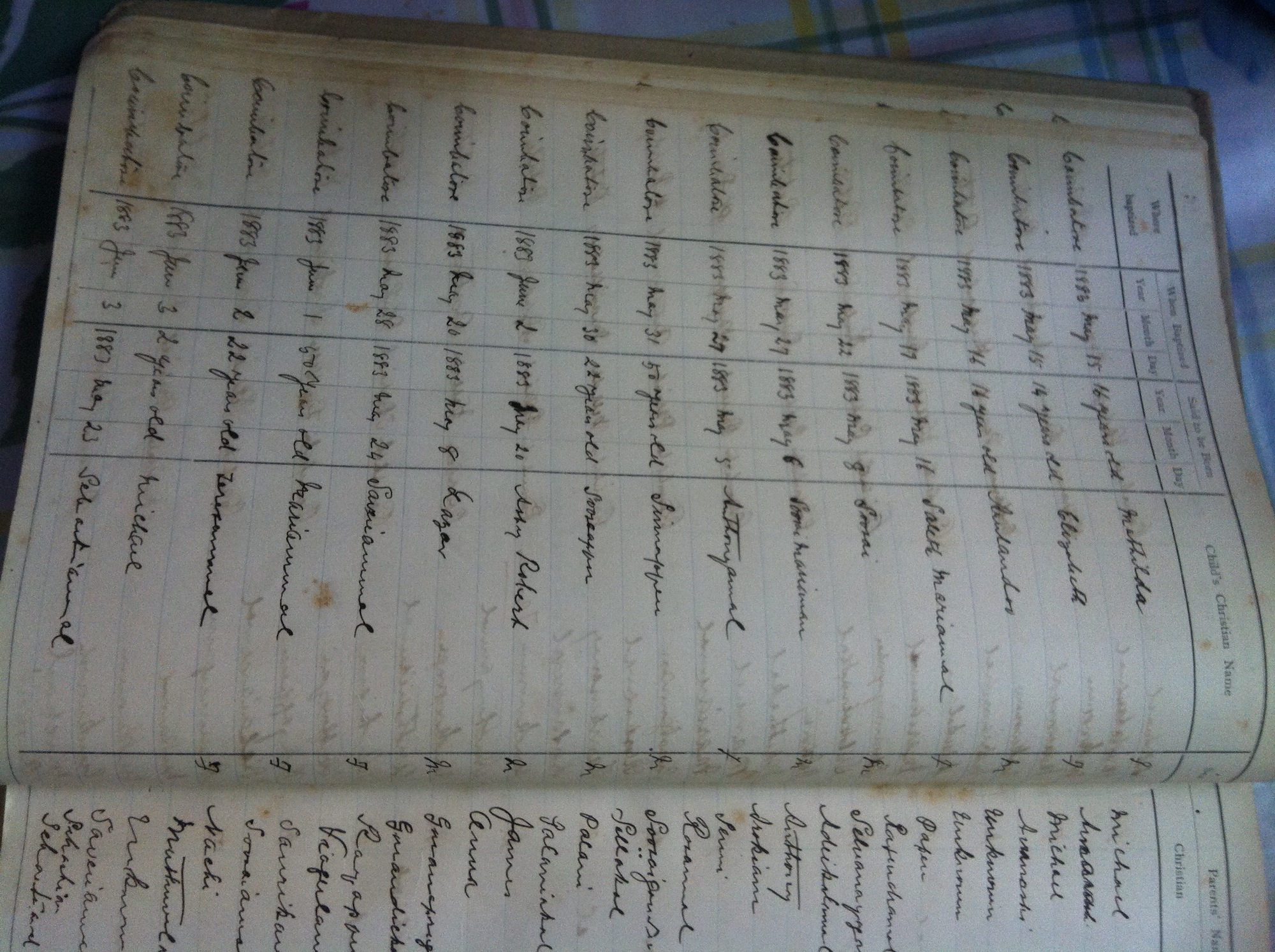 St Michaels Church, Coimbatore Baptismal Register page images.