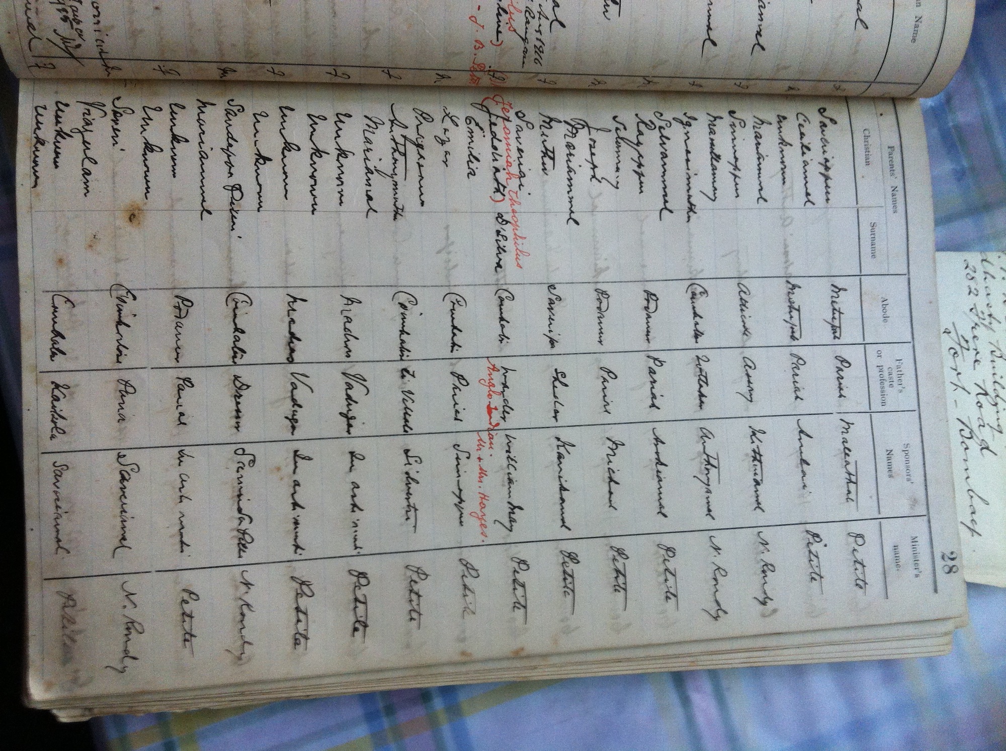 St Michaels Church, Coimbatore Baptismal Register page images.