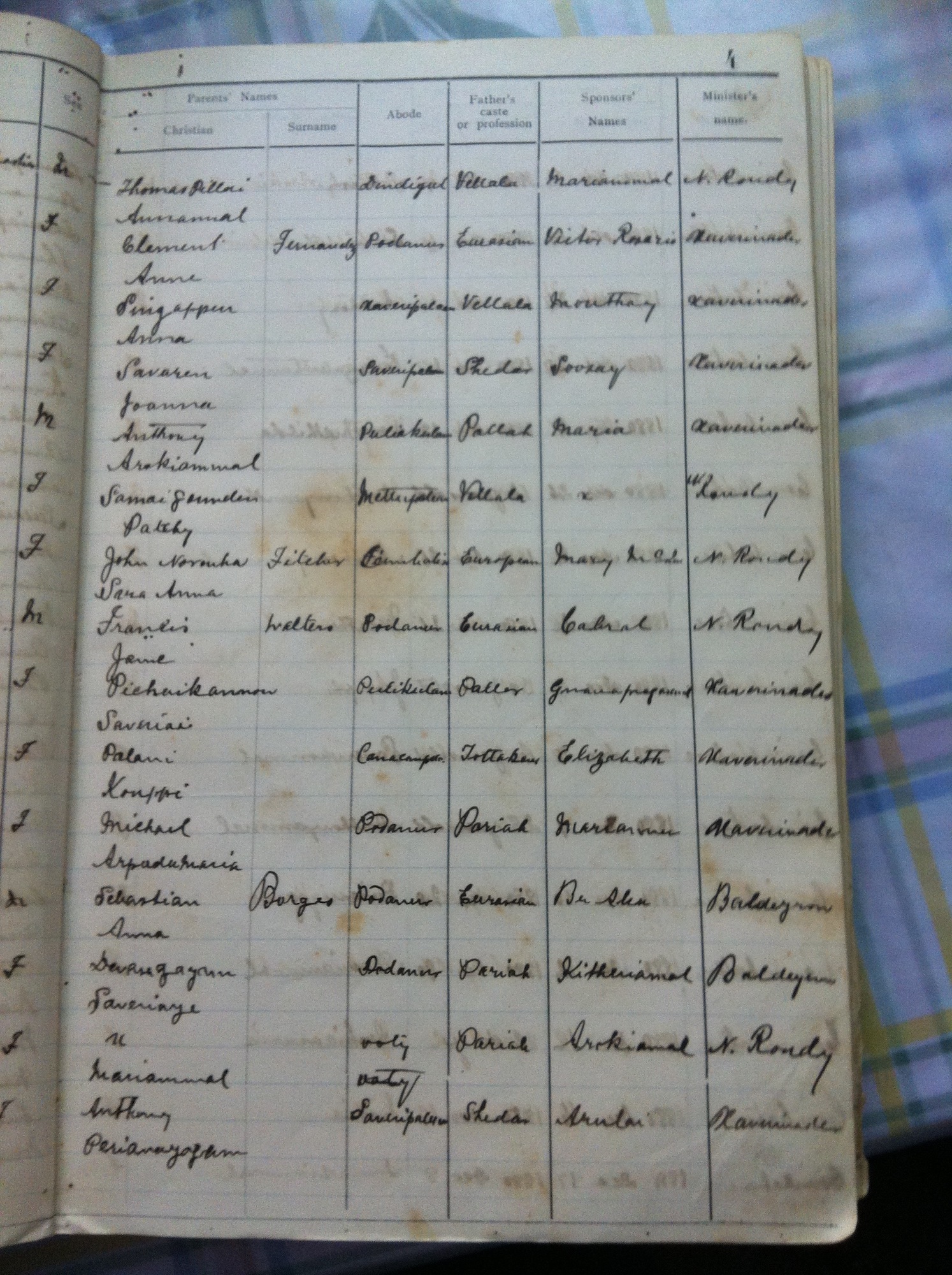St Michaels Church, Coimbatore - Baptismal Register