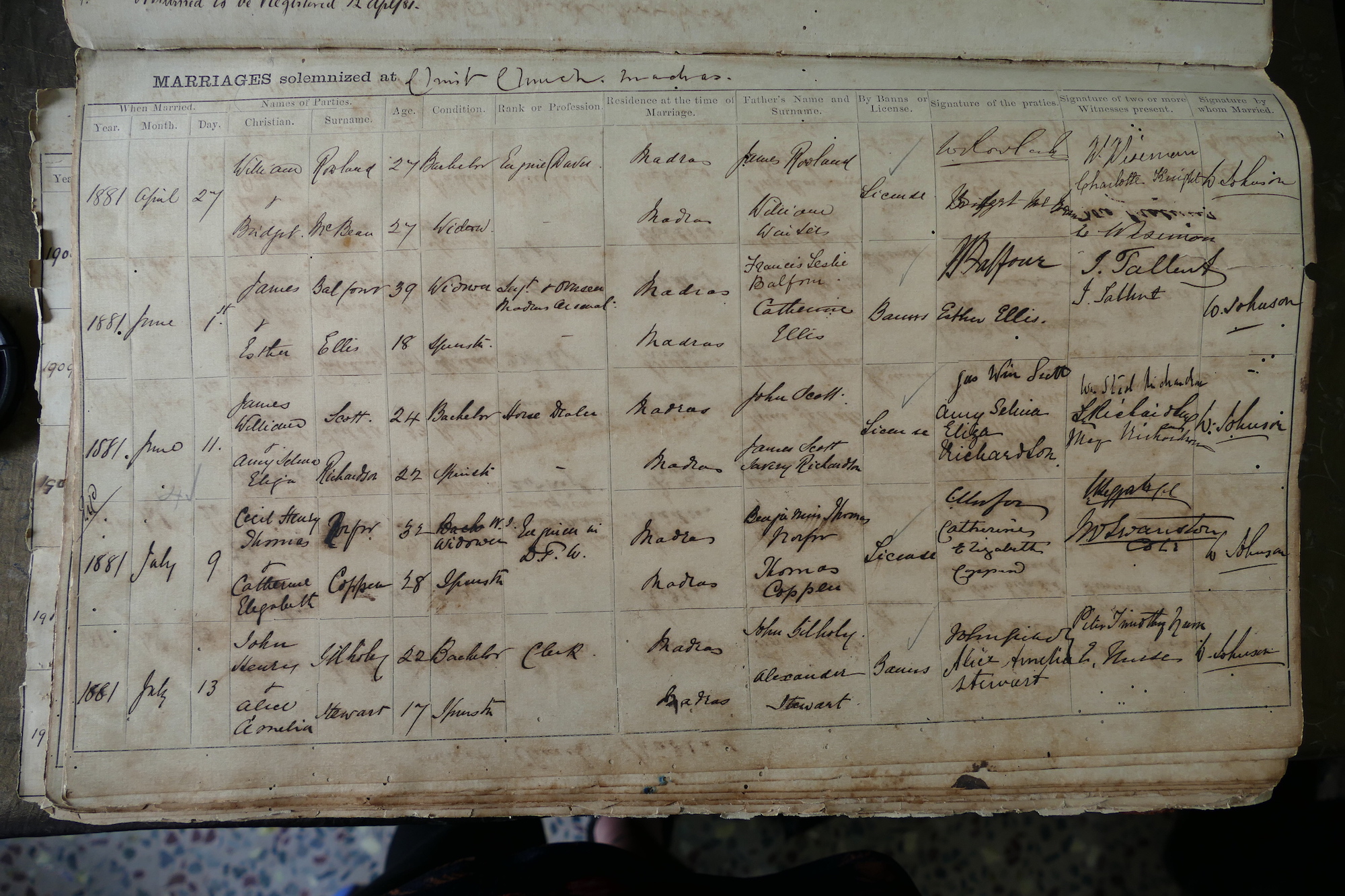 Image title: Christ Church, Mount Road Madras, Marriage Register 1874-1898 - 19 File size: 1,158,694 bytes