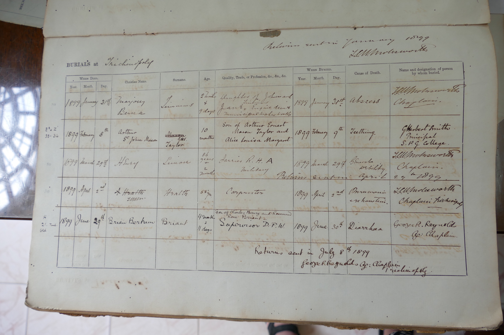 Image title: St Johns Church Trichy - Burial Reg 1895-1958 [011]