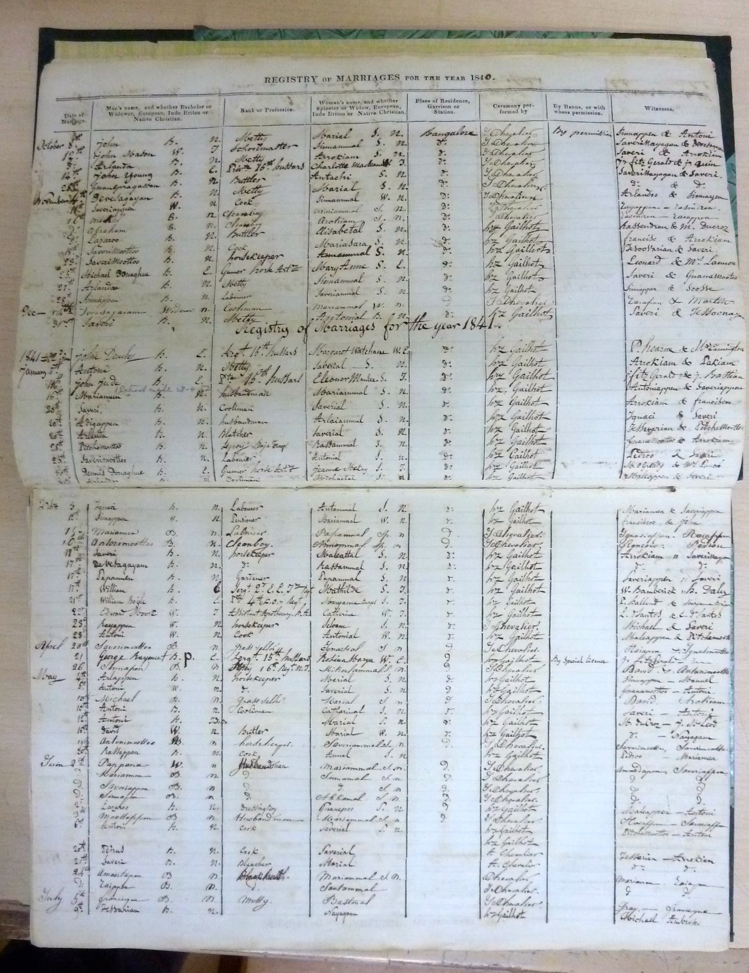 Image title: St Patricks RC Church Bangalore - Marriage Register 1840 to 1880 - P1050191.JPG
