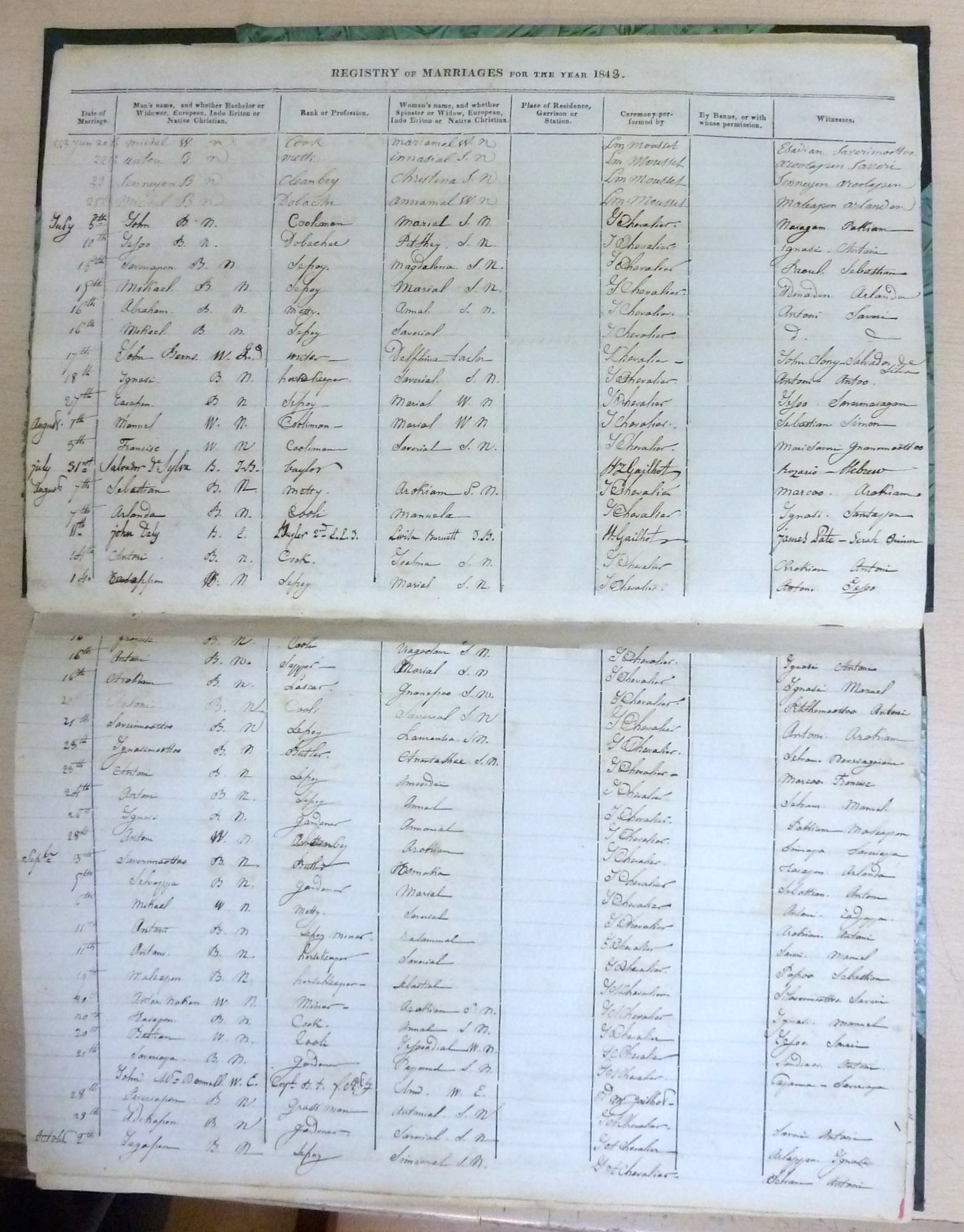 St Patricks RC Bangalore Madras - Marriage Registers