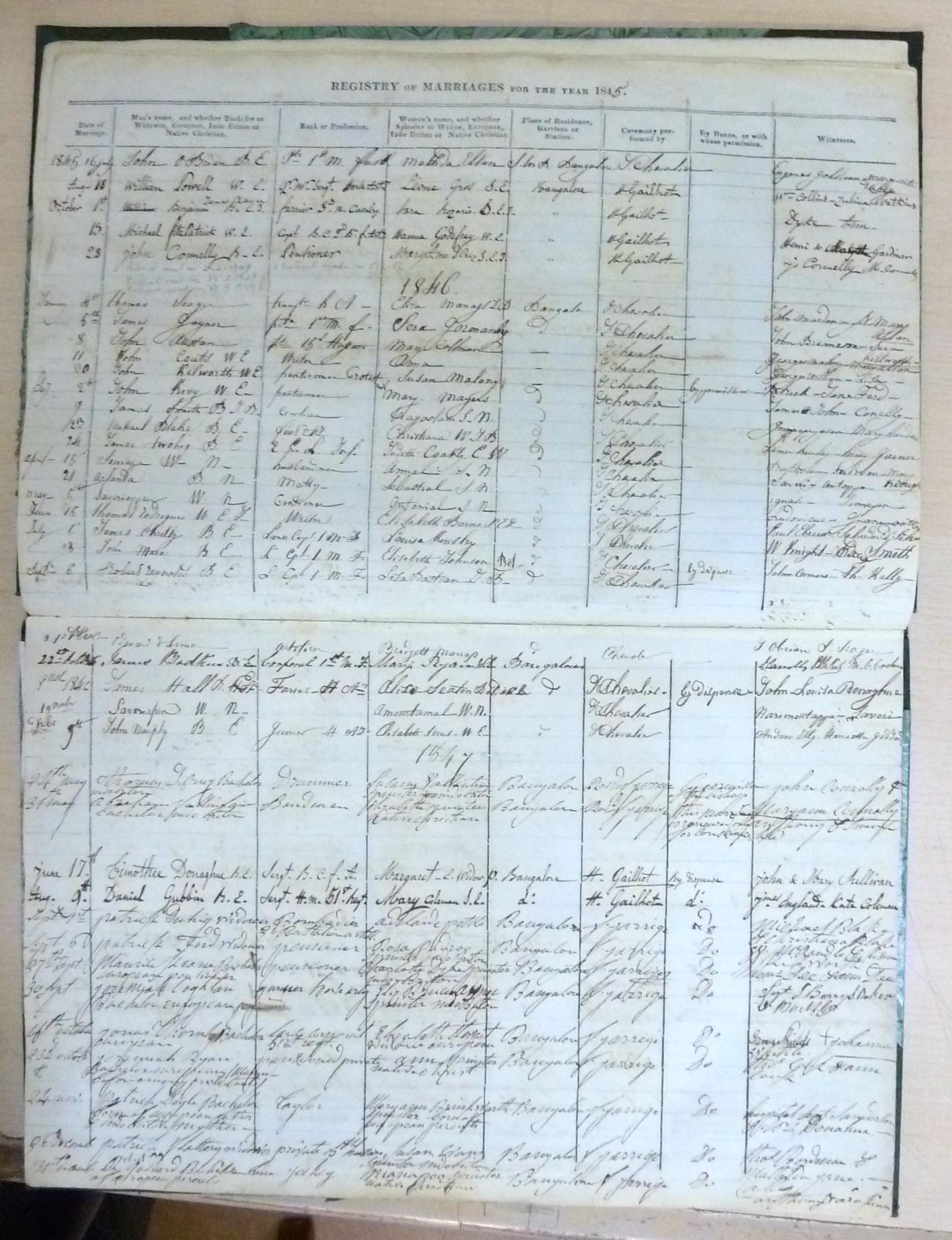 Image title: St Patricks RC Church Bangalore - Marriage Register 1840 to 1880 - P1050199.JPG