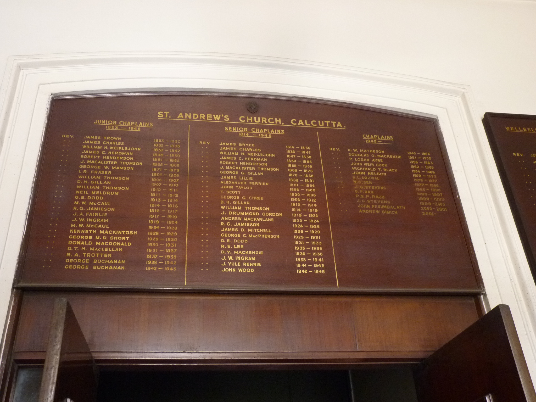 St Andrews Church (Kirk), Calcutta - Chaplains