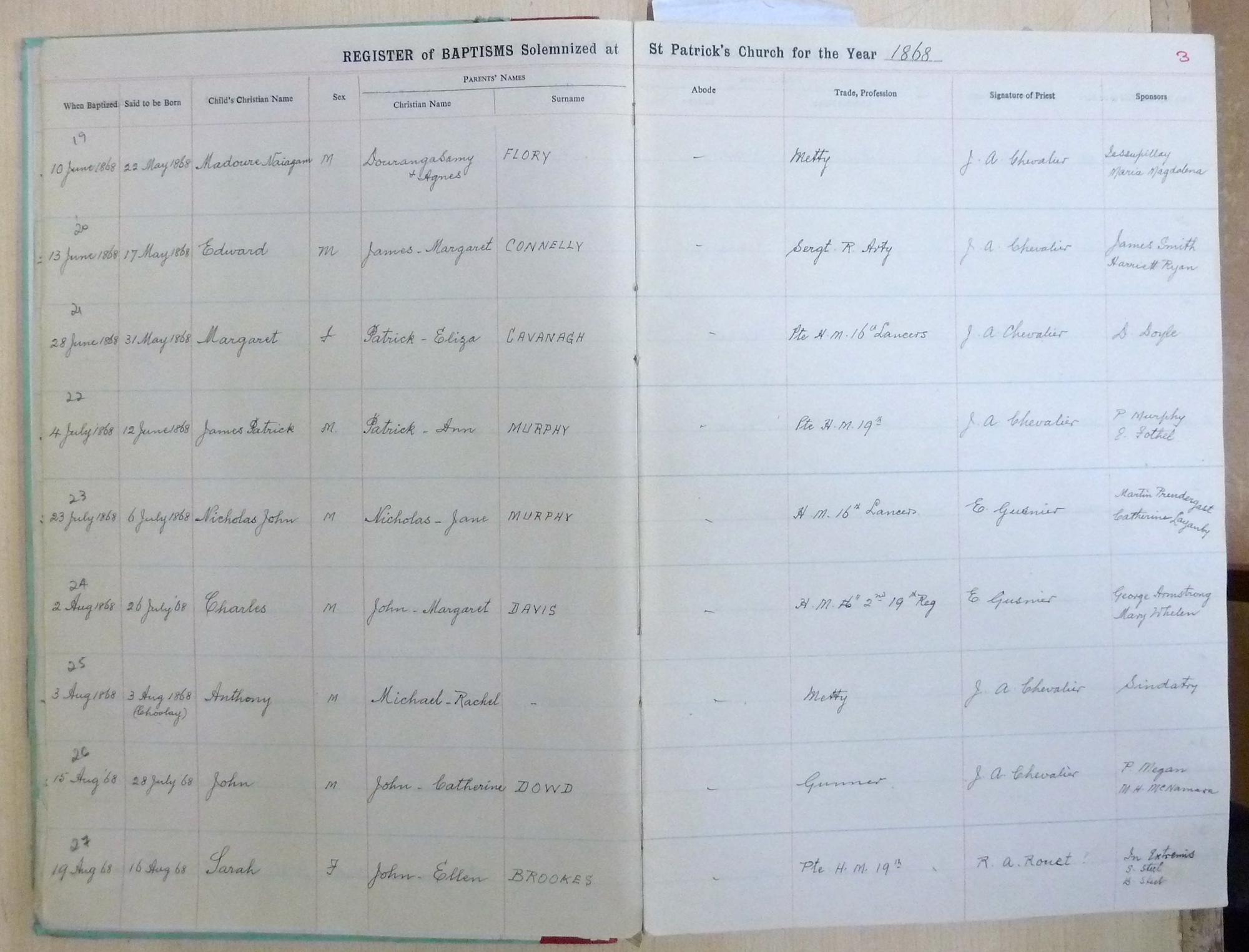 Image title: St Patricks Church, Bangalore Register of Baptisms 1868 to 1898 - page 03 File size: 873,885 bytes