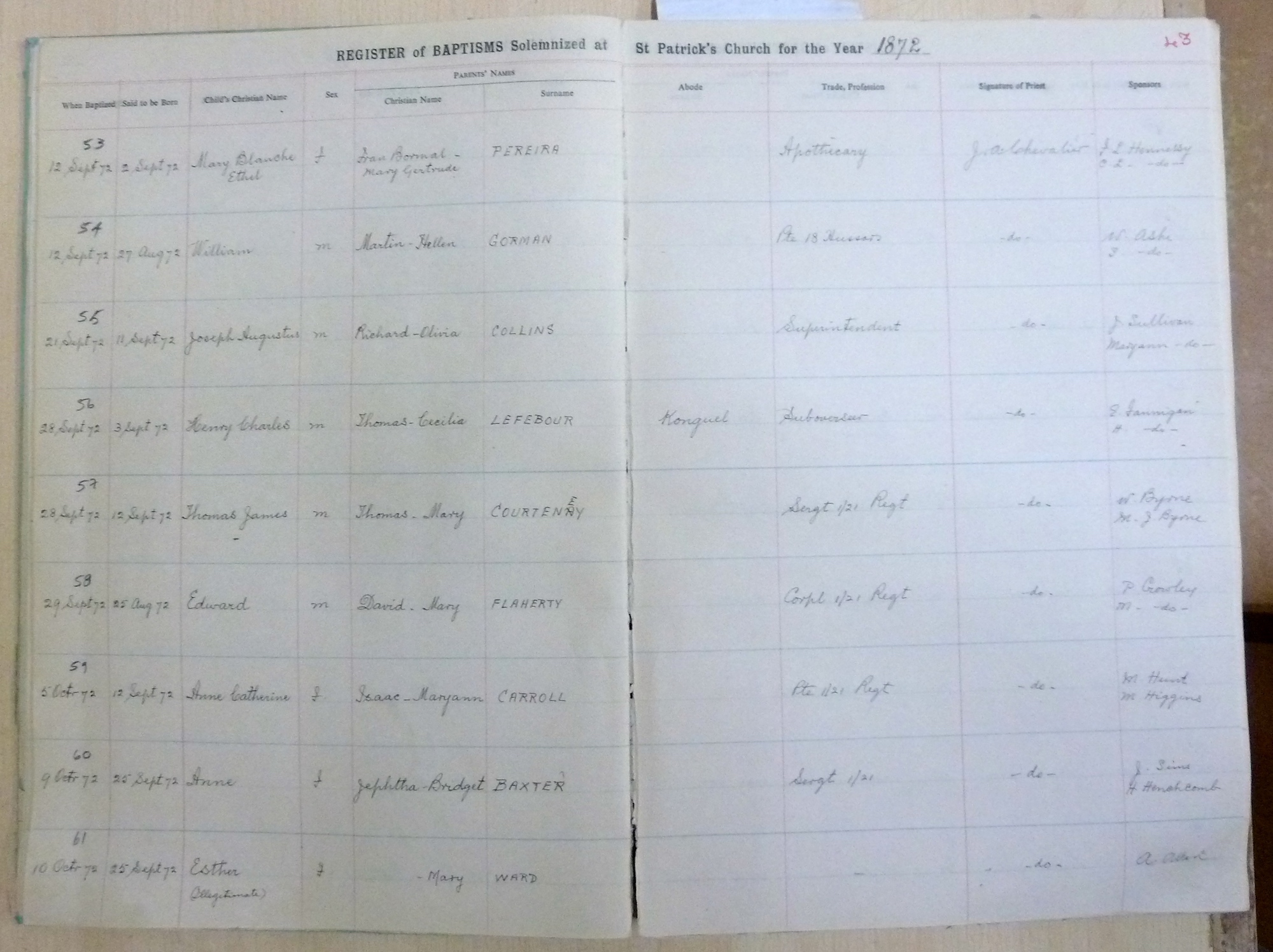 Image title: St Patricks Church, Bangalore Register of Baptisms 1868 to 1898 - page 43 File size: 844,382 bytes