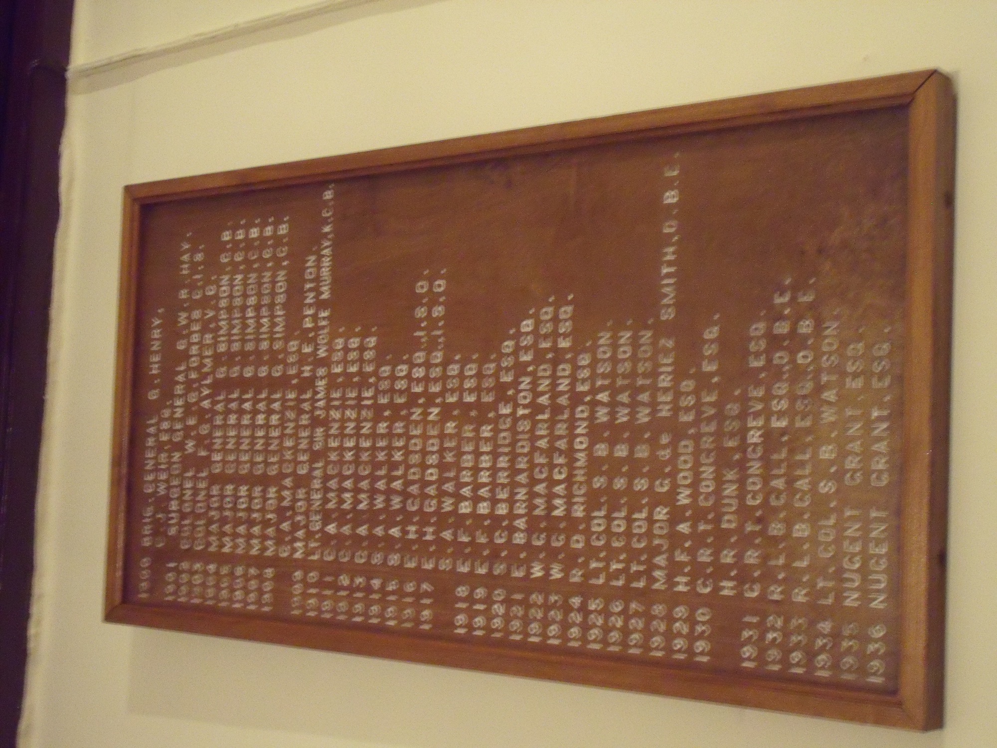 Image title: Ootacamund Club Presidents since 1864 - Plaque 2