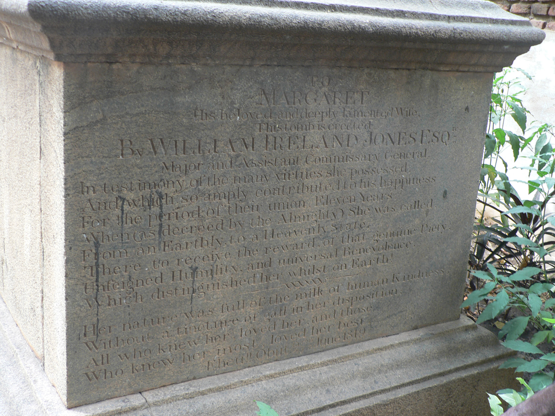 Image title: Jones, Margaret, tombstone at Trichy