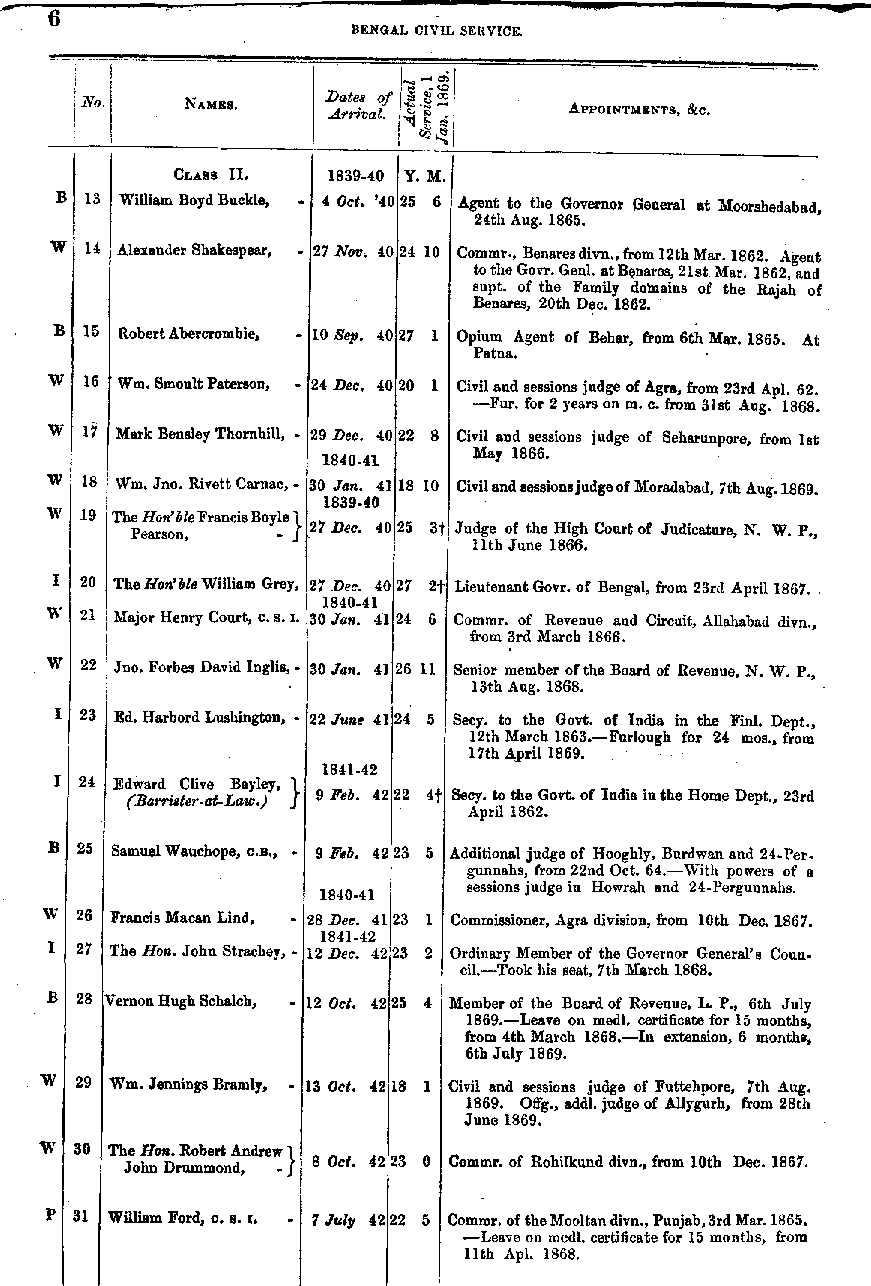 Bengal Civil Service Gradation Lists 1869