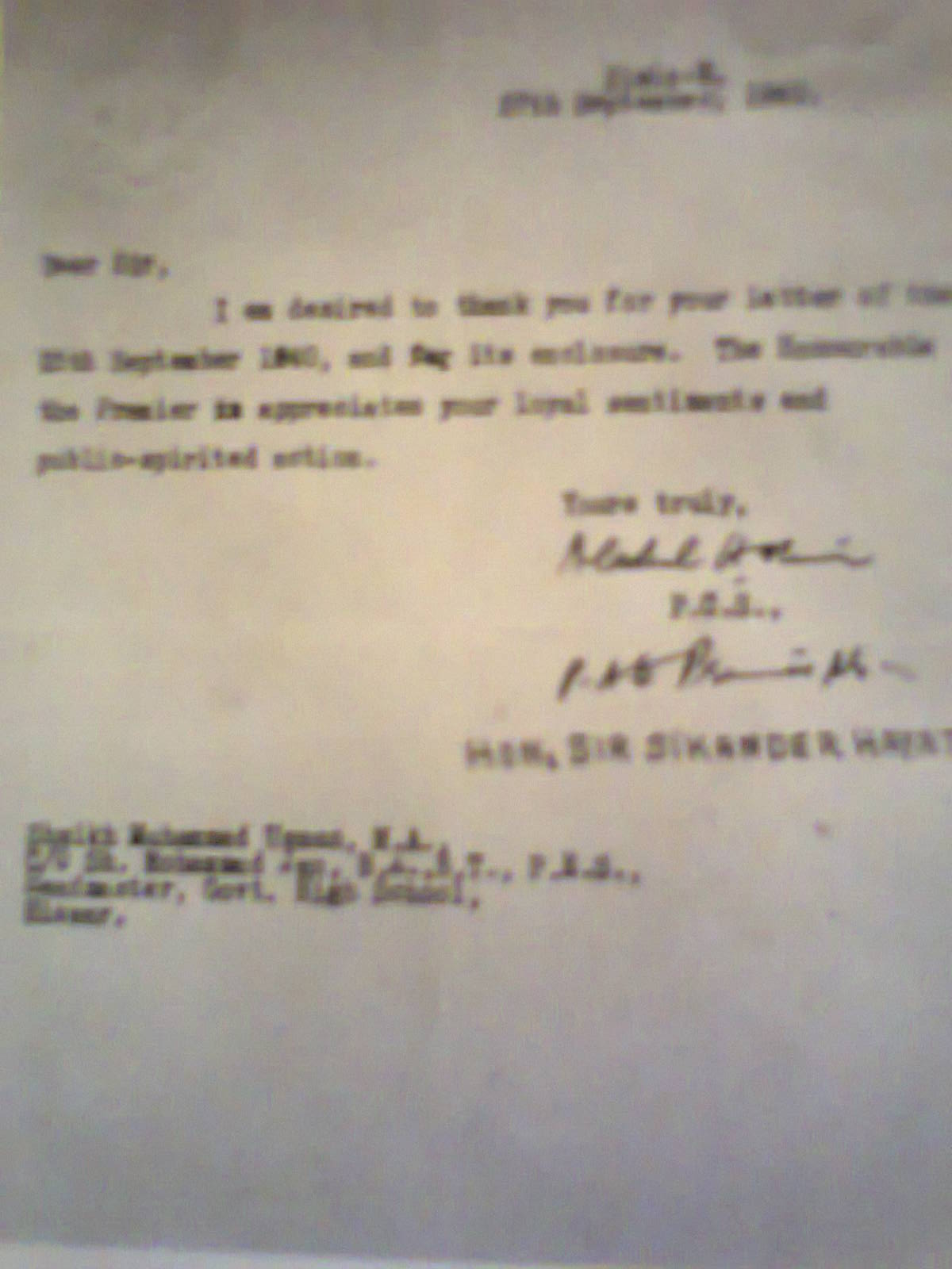 Image title: Images from The Sophia Institute - Copy of a letter from the PA to Sir Sikandar Hayat Khan File size: 109,786 bytes |