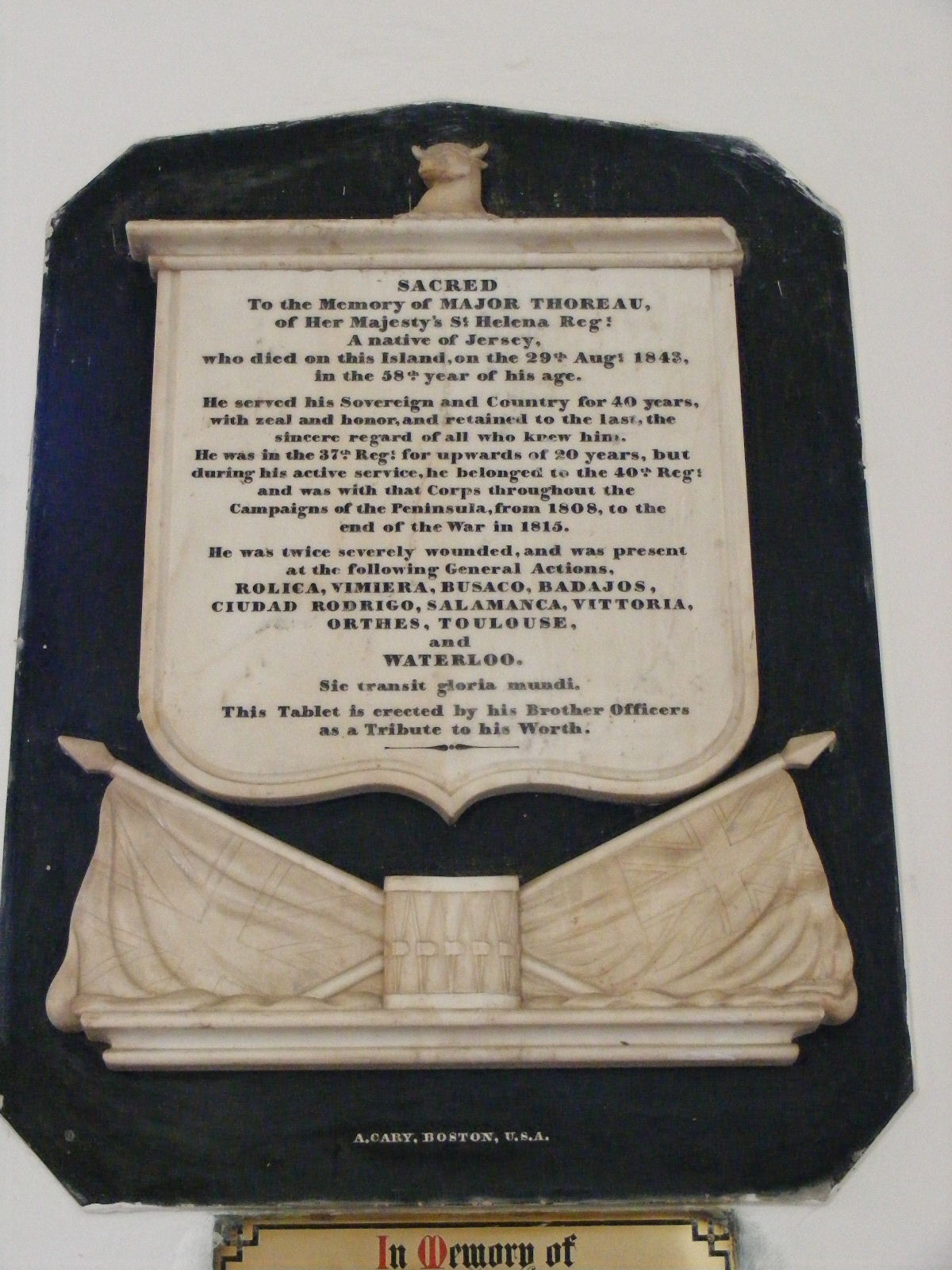 Memorial to Major Thoreau, H.M. St. Helena Regiment