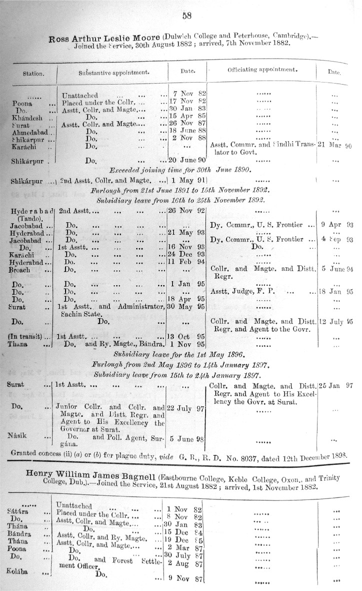 Image title: Bombay Gazetted Civil Servants 1899 Page - 0058.JPG