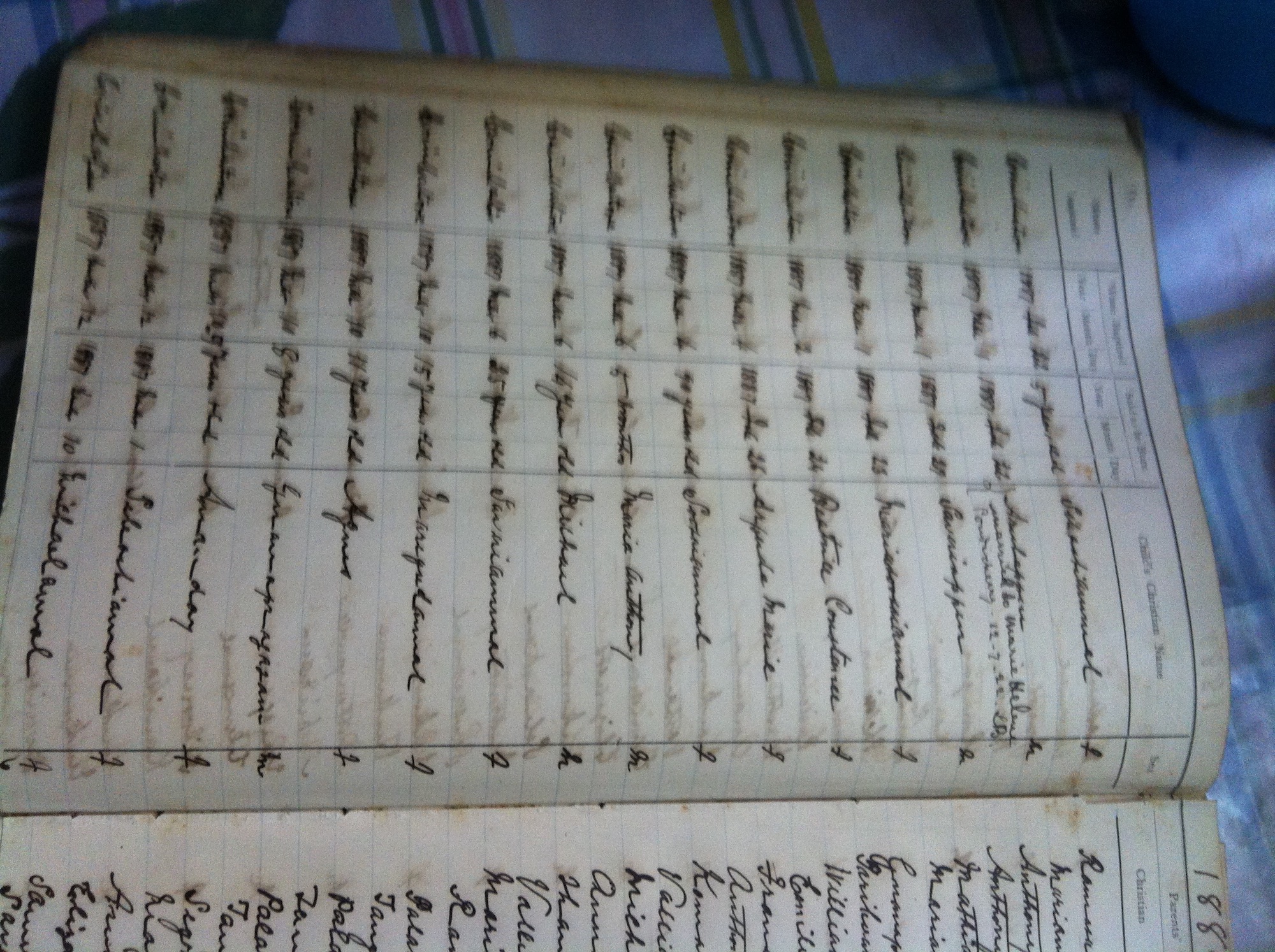 St Michaels Church, Coimbatore Baptismal Register page images.