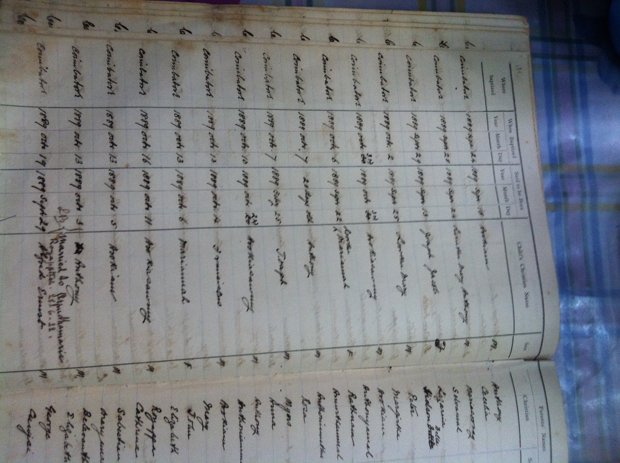 St Michaels Church, Coimbatore Baptismal Register page images.