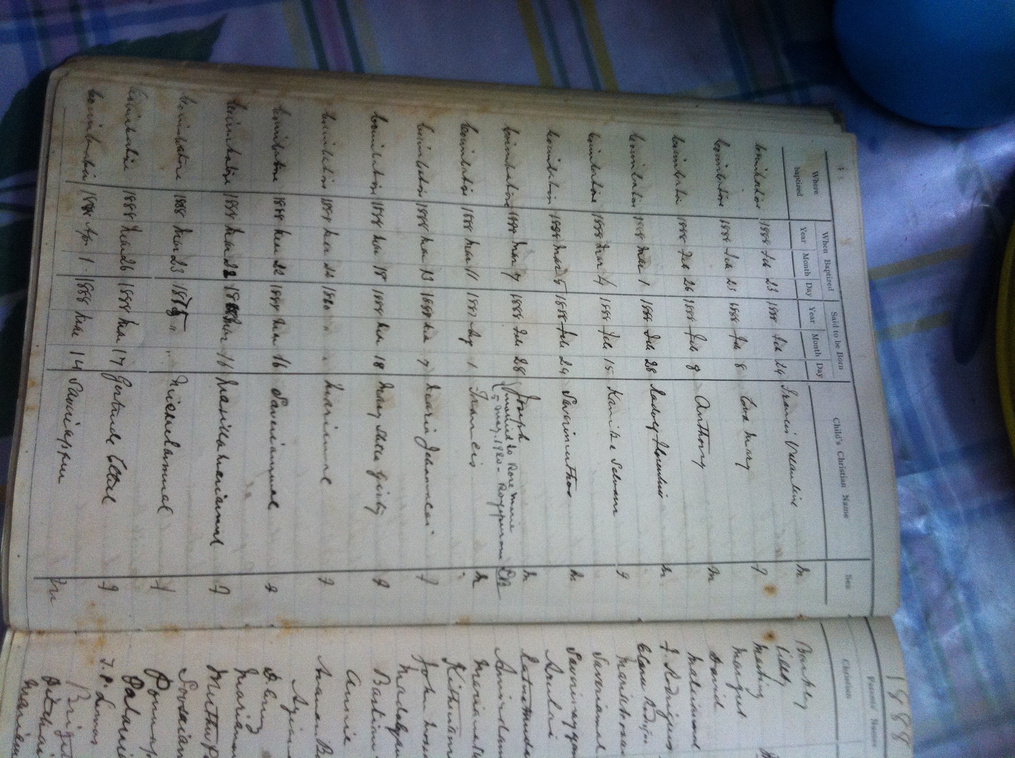 St Michaels Church, Coimbatore - Baptismal Register