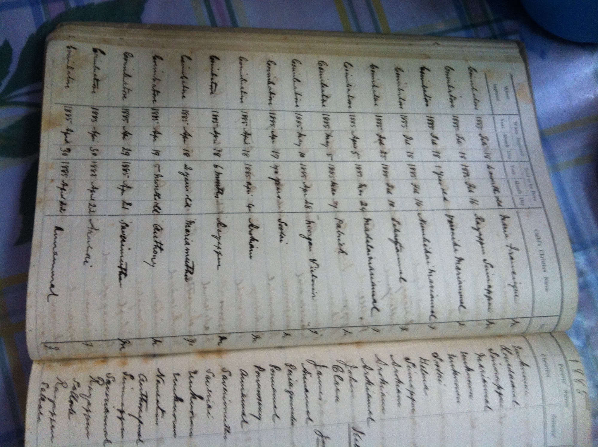St Michaels Church, Coimbatore Baptismal Register page images.