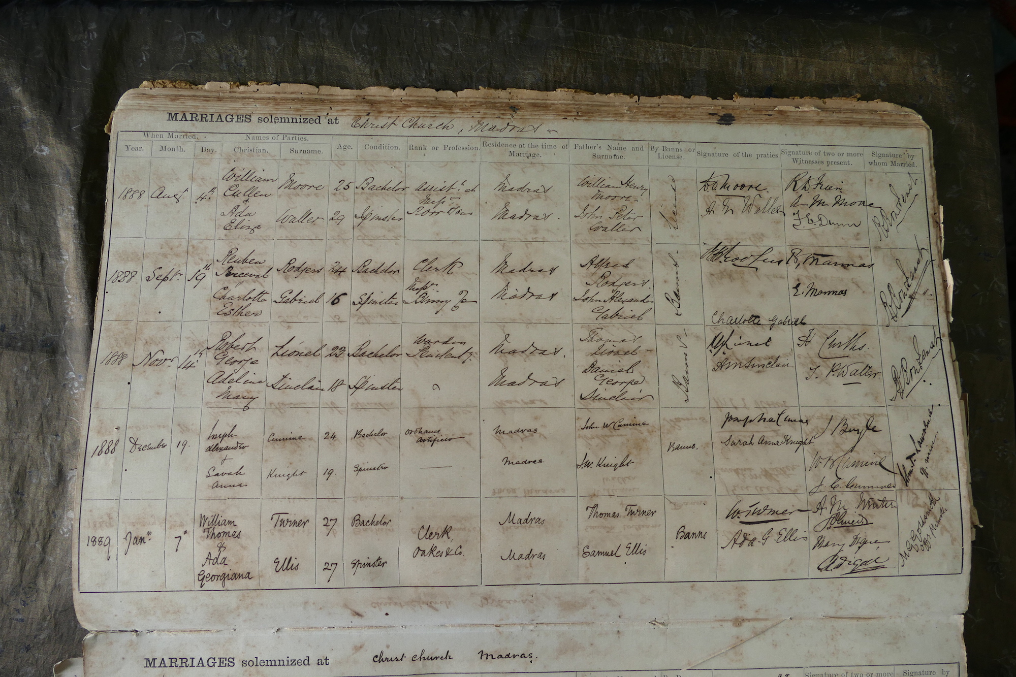 Christ Church, Mount Rd Madras - Marriage Register