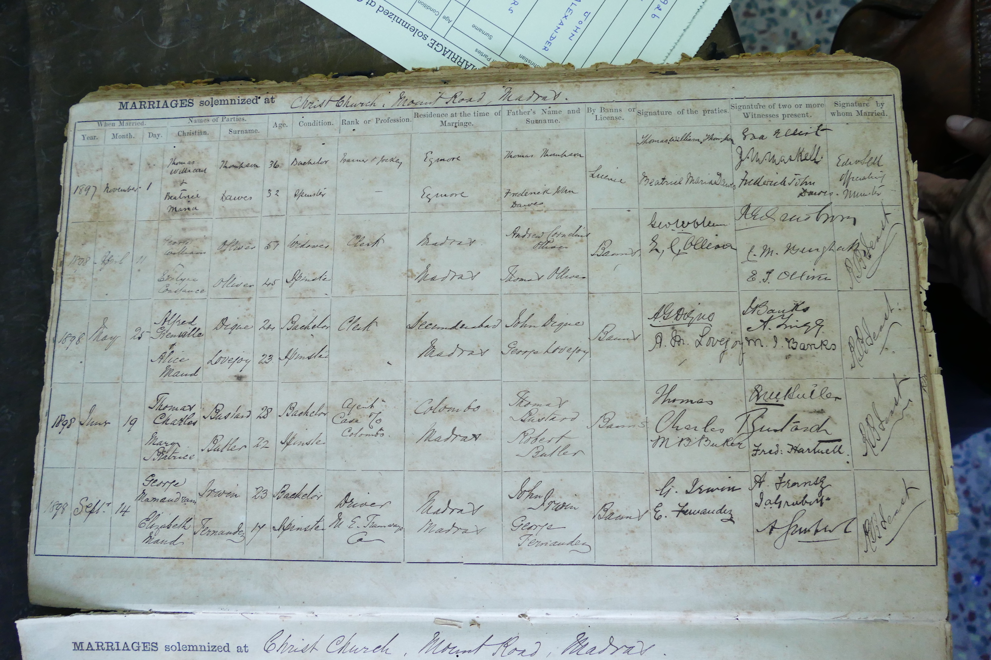 Christ Church, Mount Rd Madras - Marriage Register