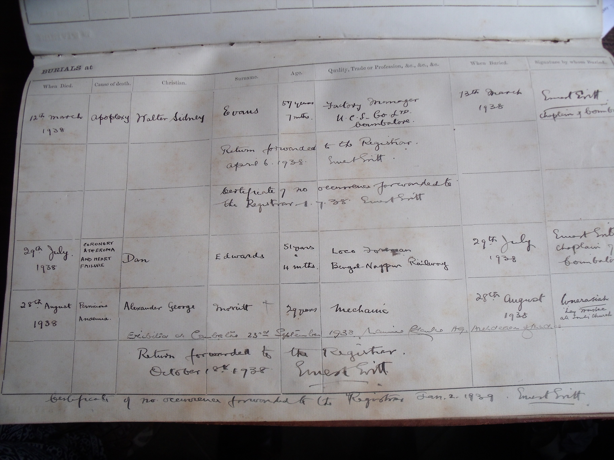 All Souls Church, Coimbatore - Burial Records