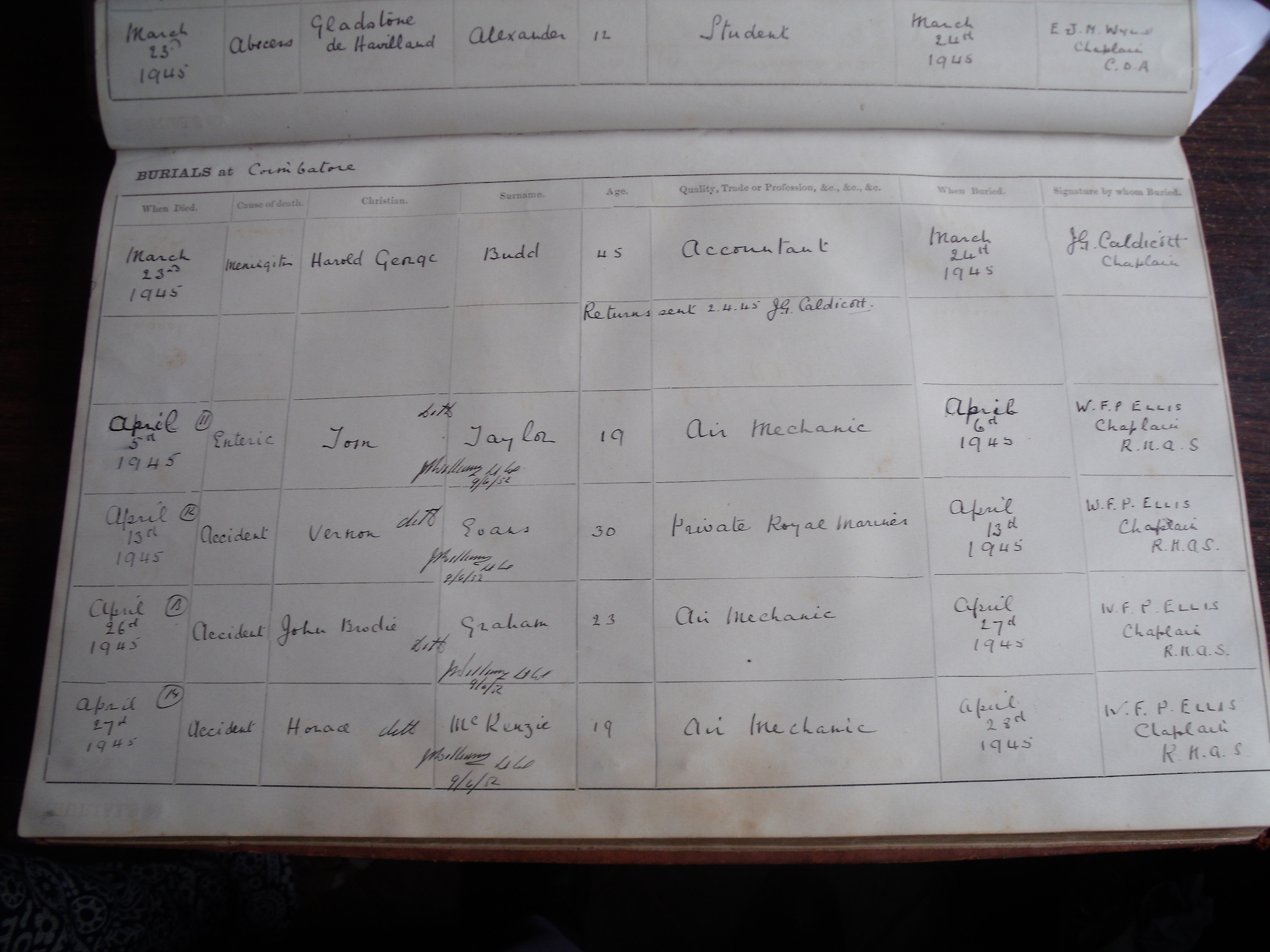 All Souls Church, Coimbatore - Burial Records
