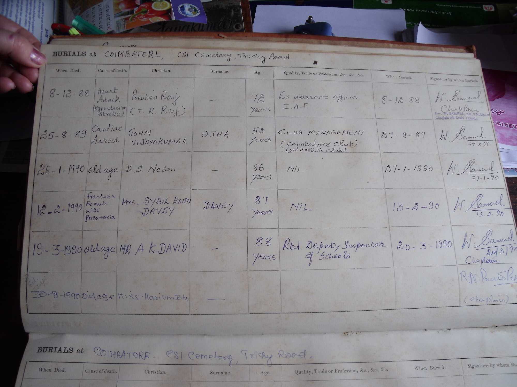 All Souls Church, Coimbatore - Burial Records
