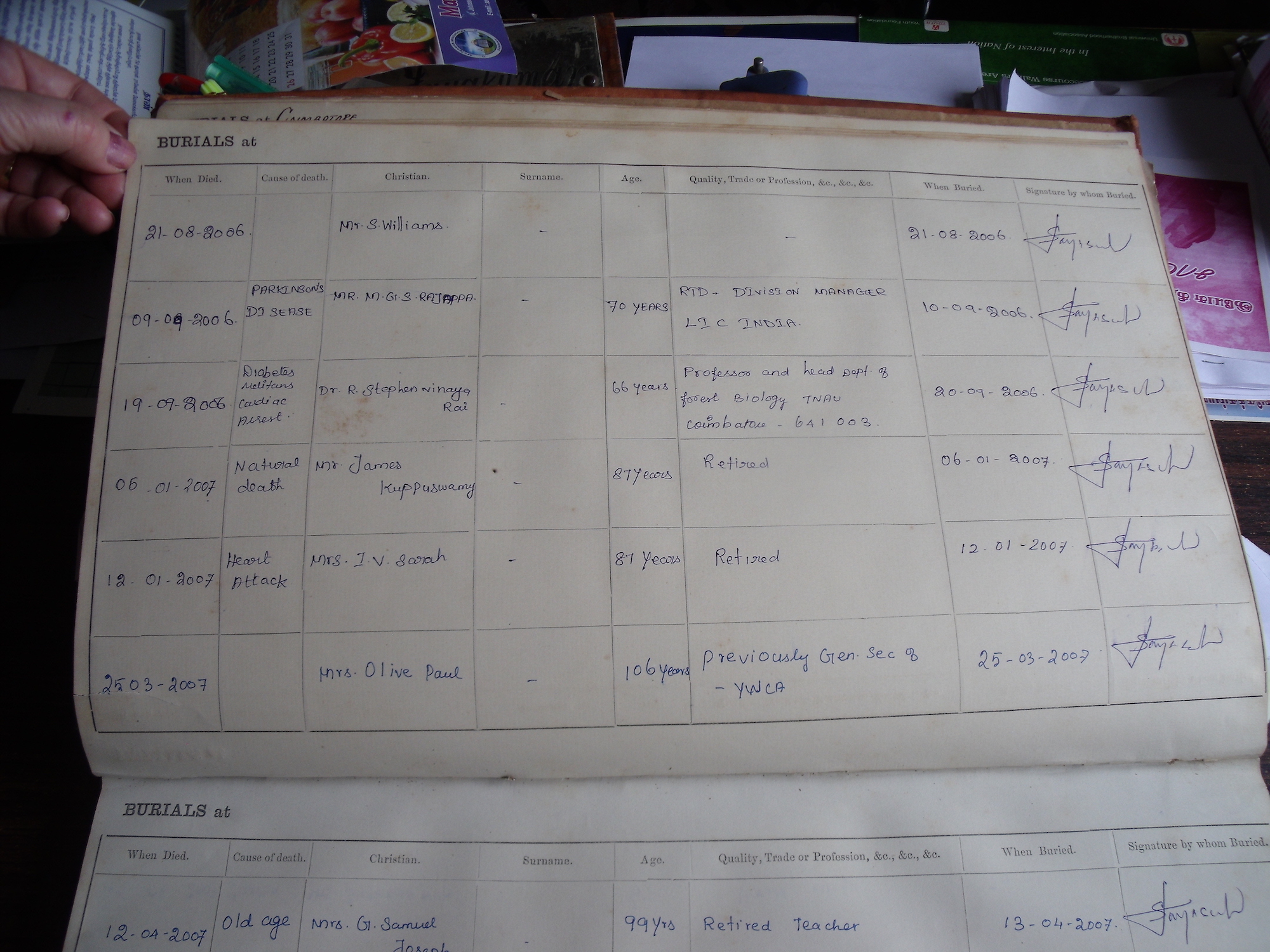 All Souls Church, Coimbatore - Burial Records