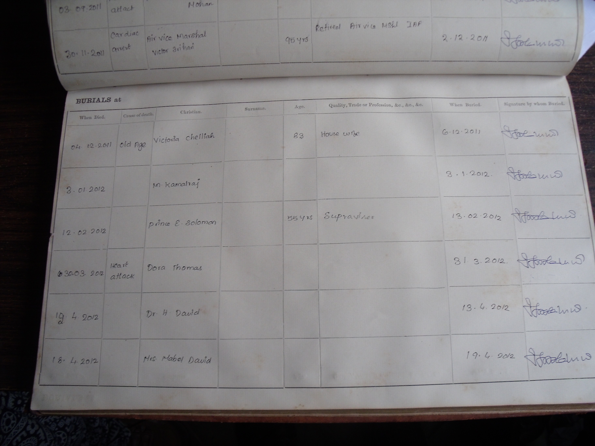 All Souls Church, Coimbatore - Burial Records