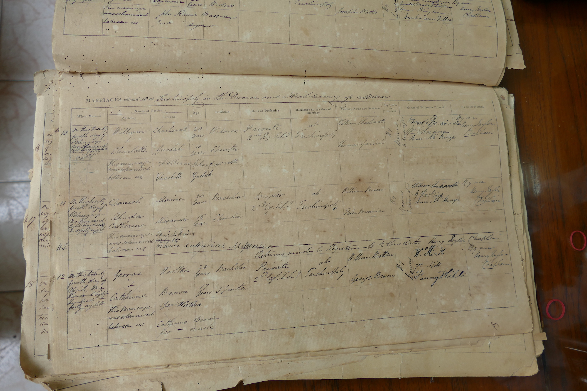 St Johns Church Trichinopoly Madras - Marriage Registers