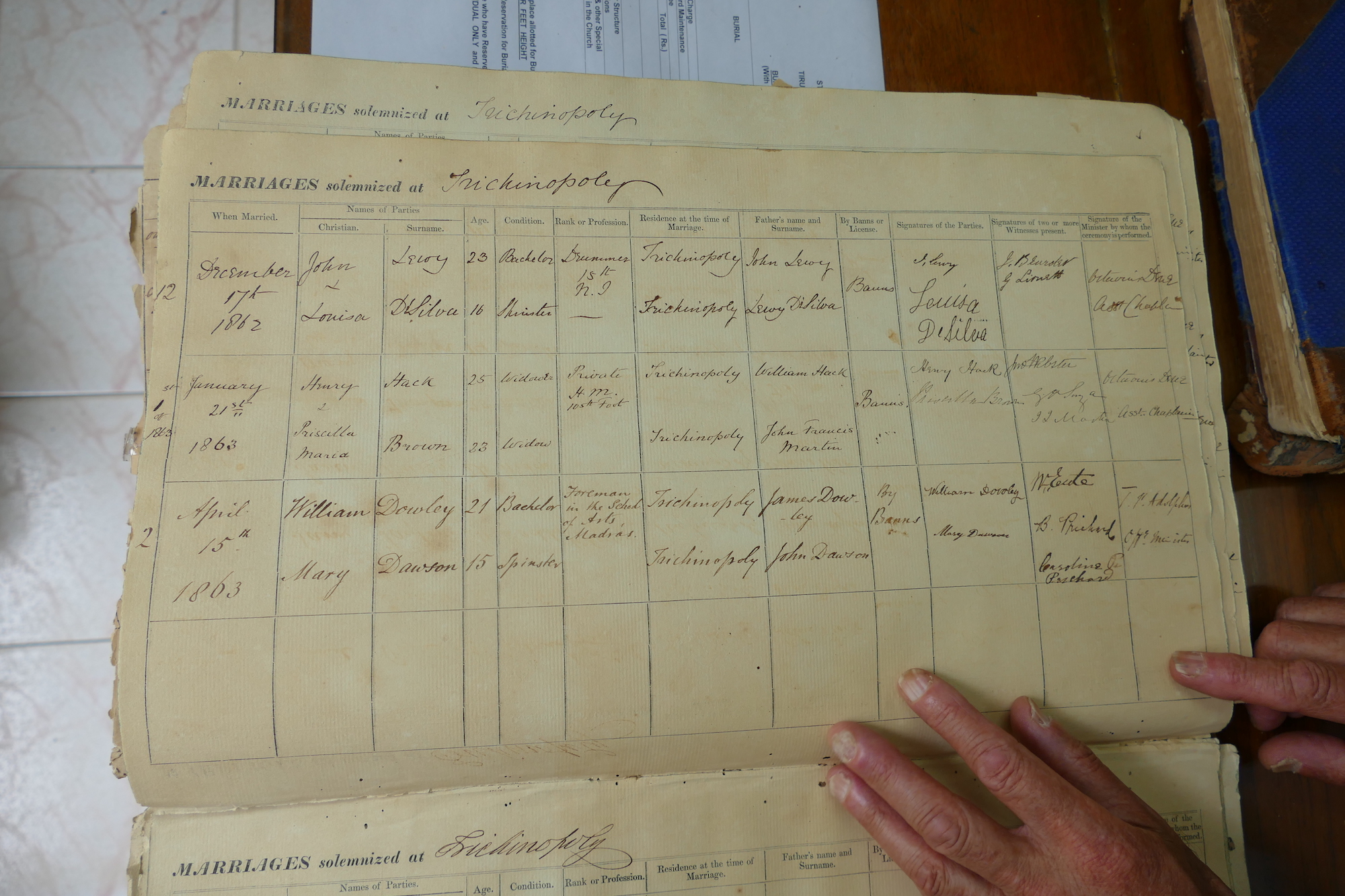St Johns Church Trichinopoly Madras - Marriage Registers