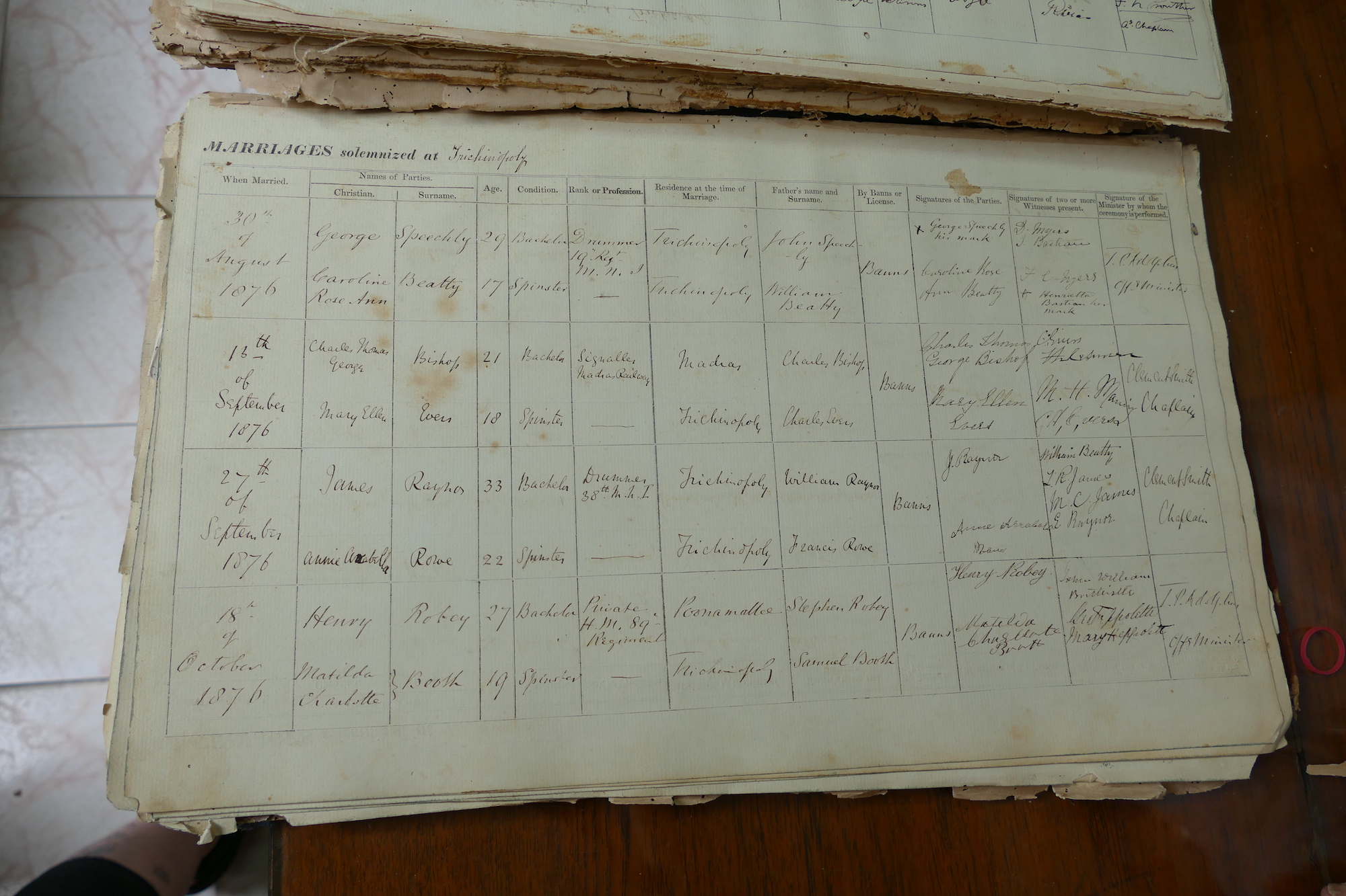 St Johns Church Trichinopoly Madras - Marriage Registers