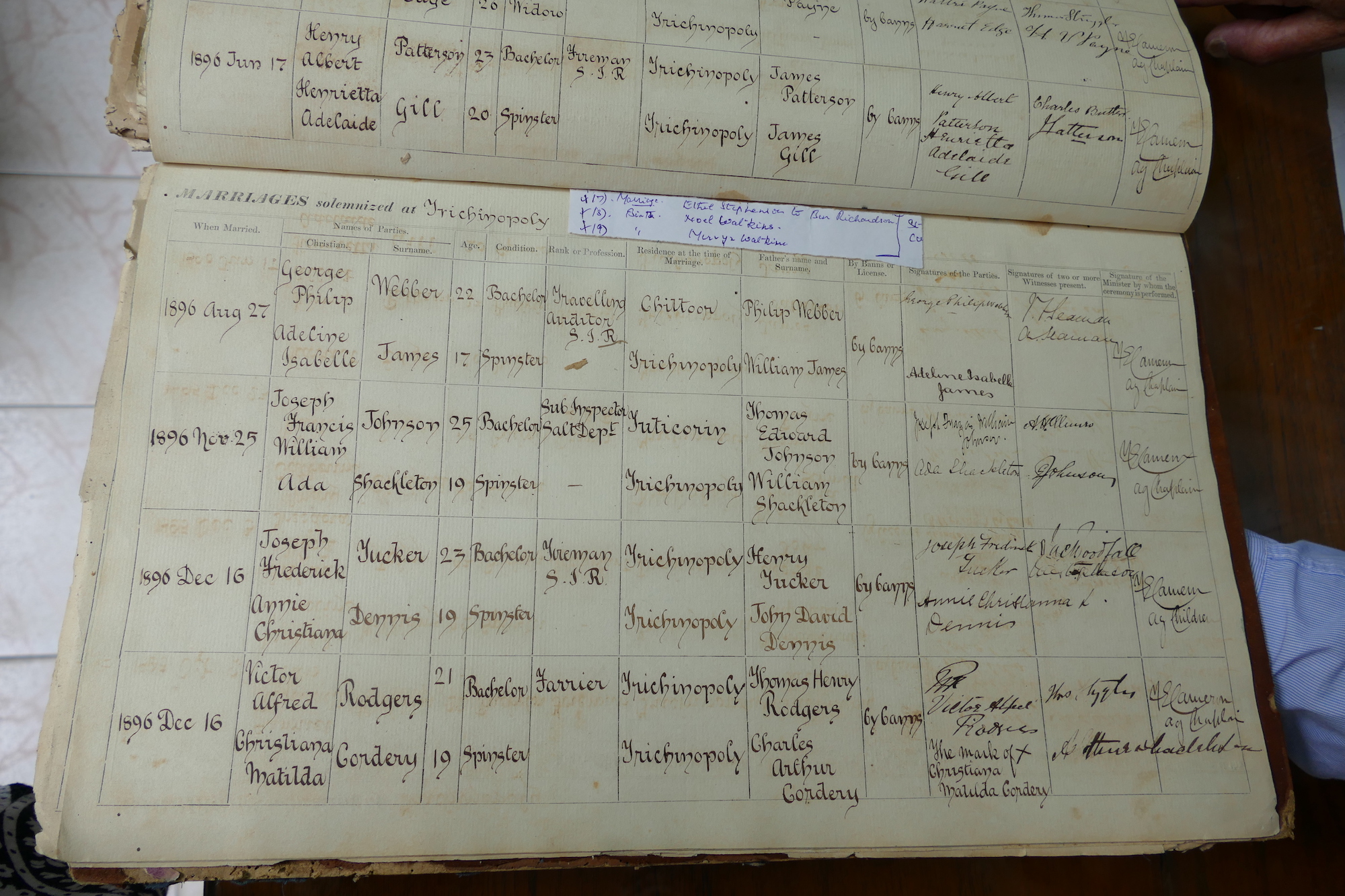 St Johns Church Trichinopoly Madras - Marriage Registers
