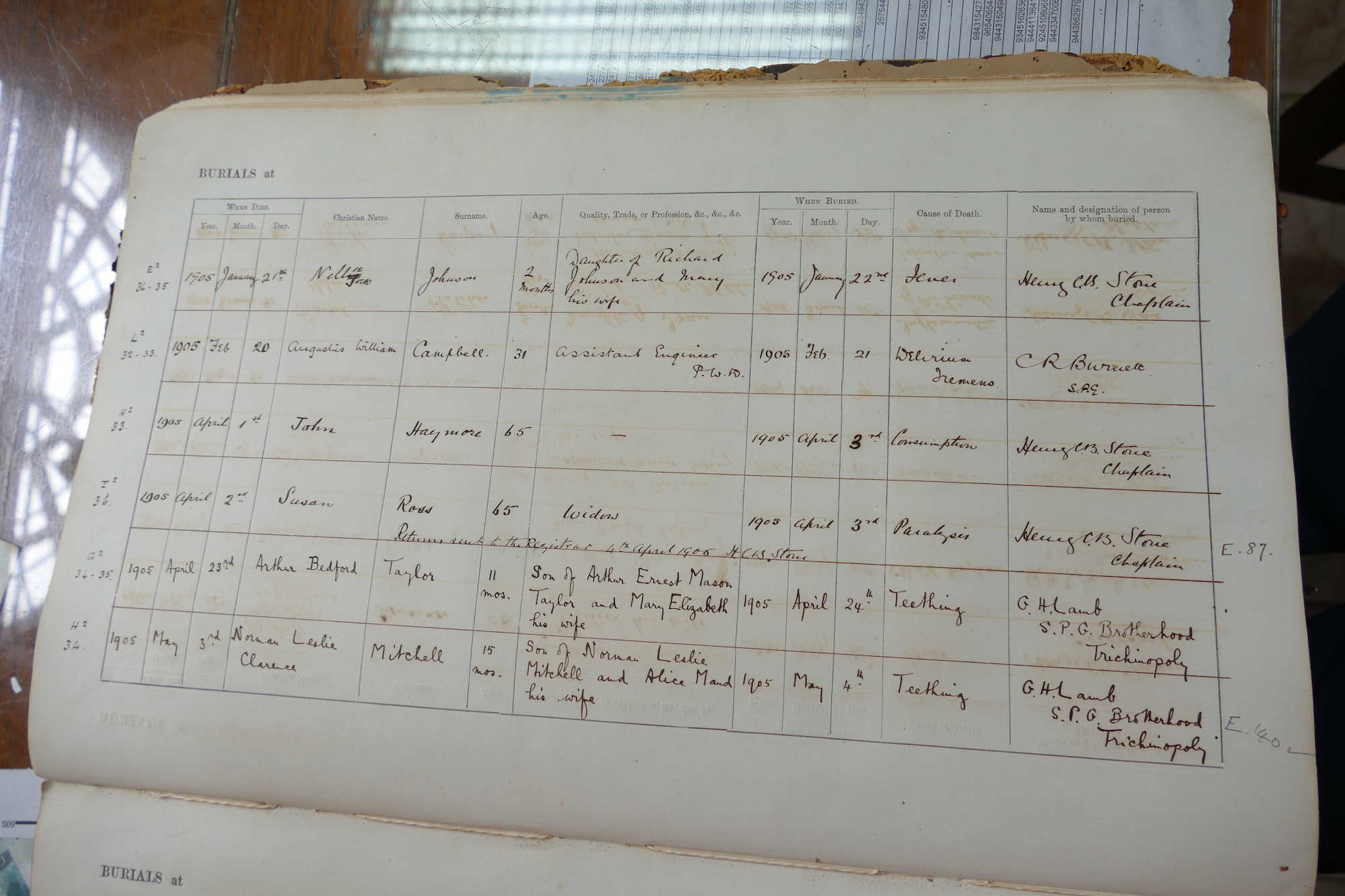 St Johns Church Trichinopoly - Burial Registers