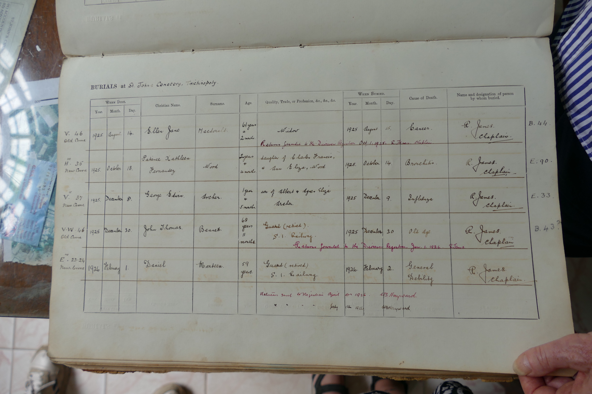 St Johns Church Trichinopoly - Burial Registers