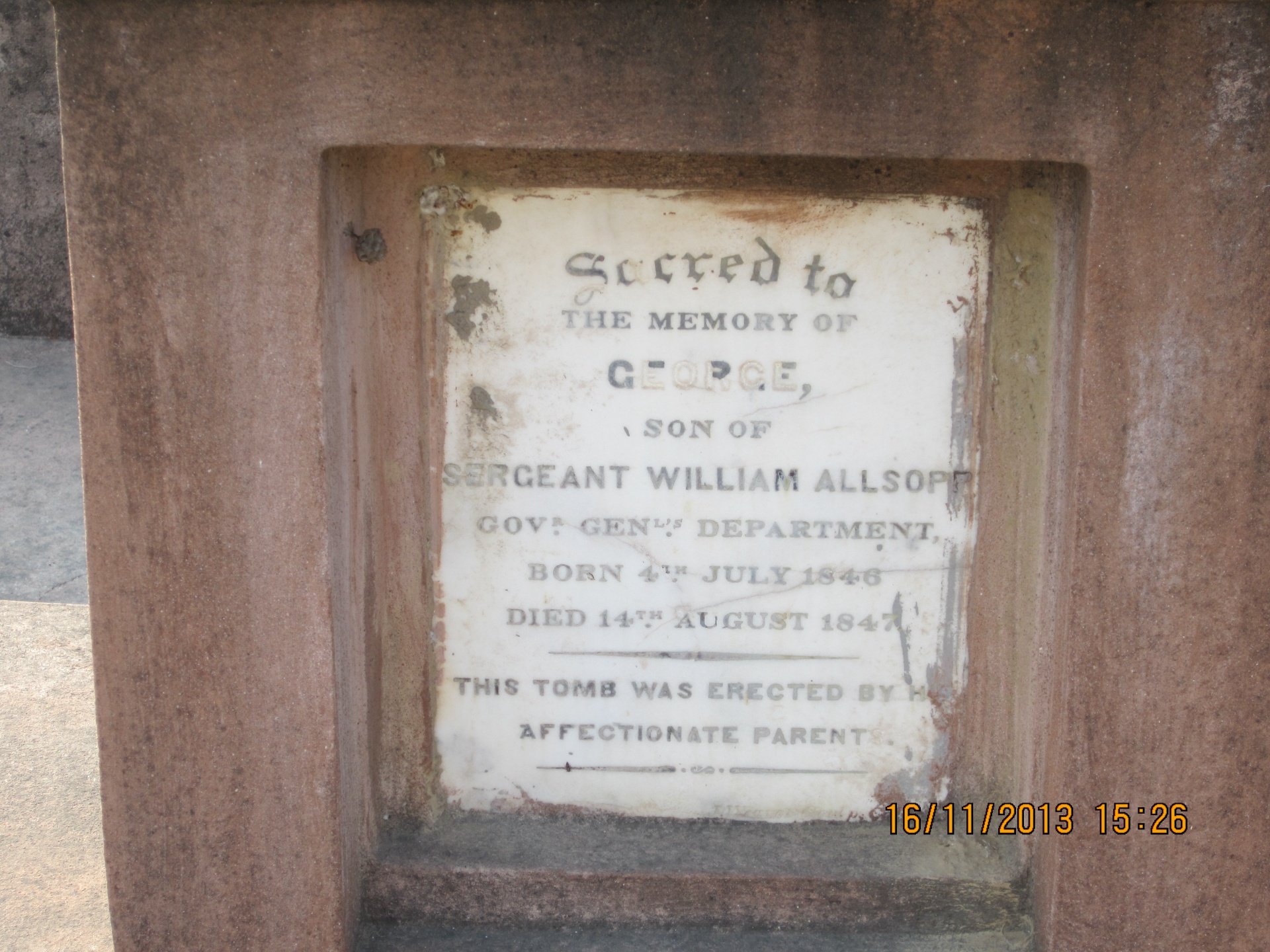 Image title: Allsopp, George 1 - Old Cemetery, Karnal