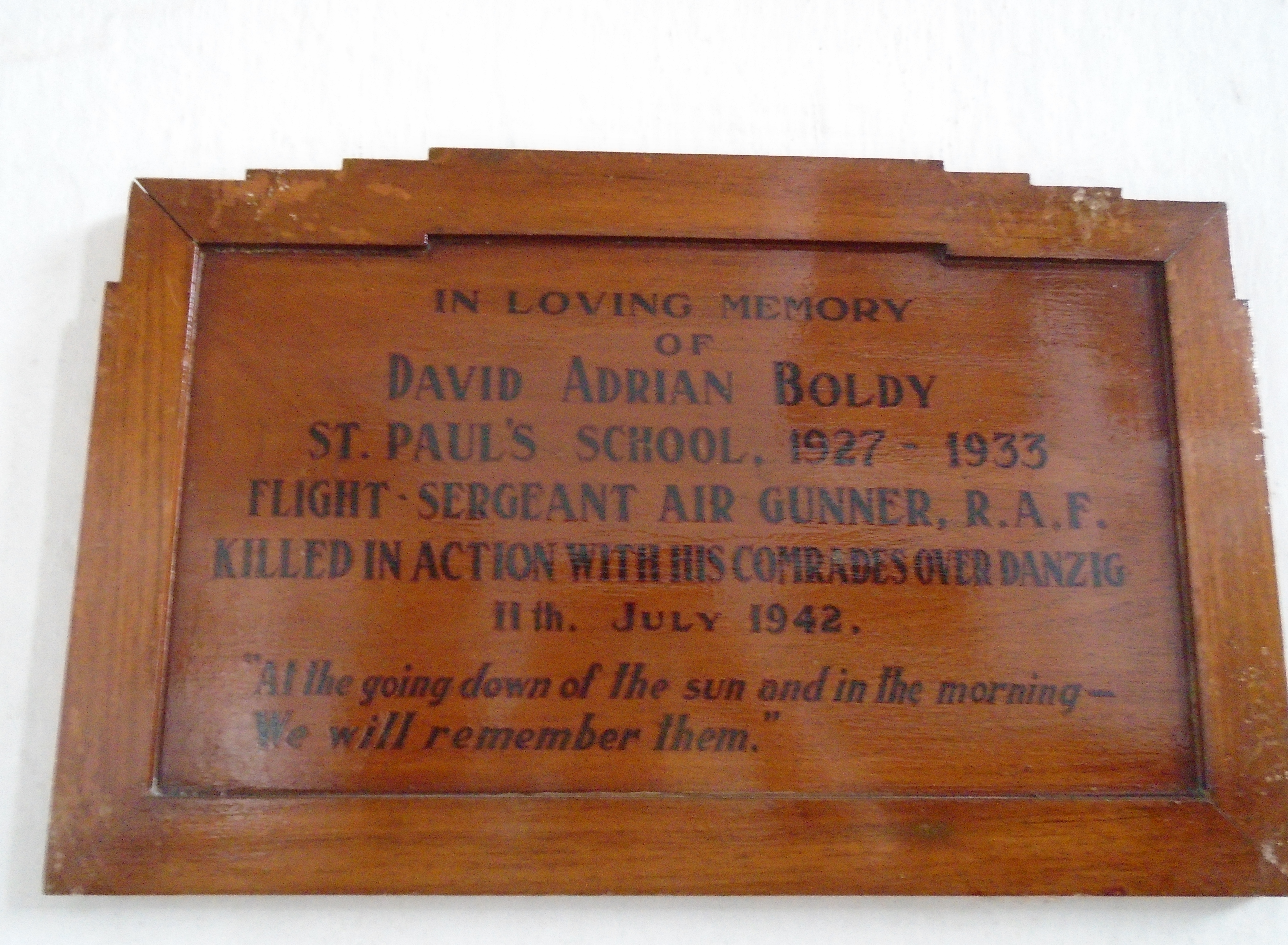 Image title: Boldy, David Adrian. Plaque at St Pauls School, Darjeeling