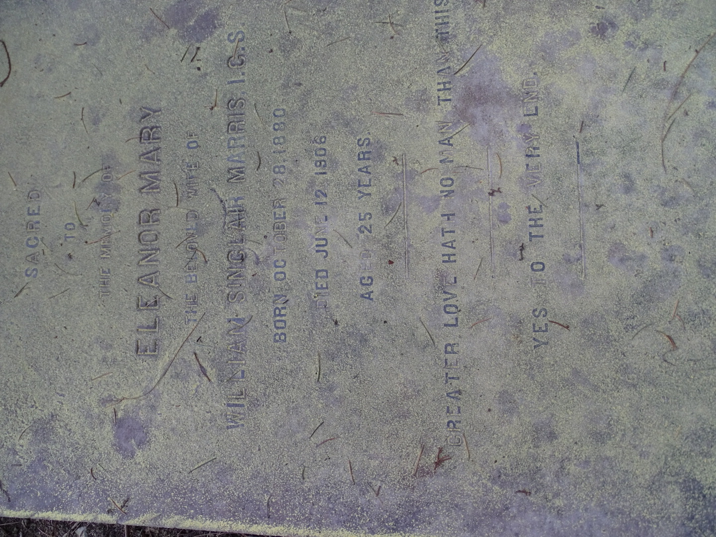 Image title: Marris, Eleanor Mary 1 - Kanlog Cemetery Simla File size: 614,638 bytes