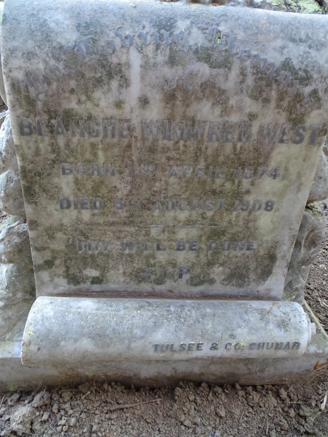Image title: West, Blanche Winifred 1 - Kanlog Cemetery Simla File size: 458,659 bytes